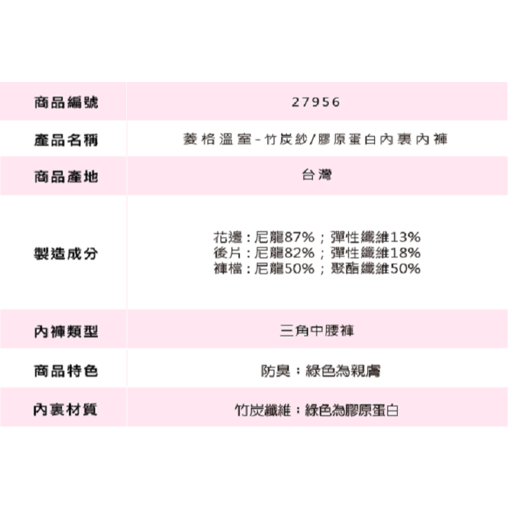 凱沃 慕思爾 Choy’s Dream 巧衣織夢 菱格溫室竹炭紗/膠原蛋白內裏內褲 M L 防臭 親膚 MIT灰,M|灰,L|綠,M|綠,LSetsChoy’s Dream 巧衣織夢內衣-慕思爾內衣&凱沃內衣專賣