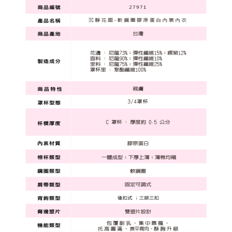 凱沃 慕思爾 Choy’s Dream 巧衣織夢 現貨 沉靜花園 軟鋼圈 膠原蛋白內裏內衣 C 托高集中 MIT