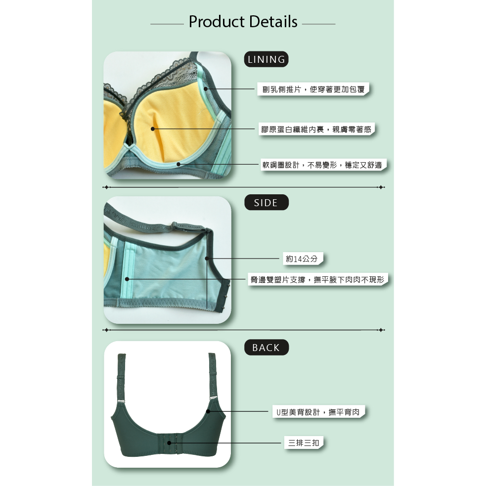 凱沃 慕思爾 Choy’s Dream 巧衣織夢 櫻雨之戀 軟鋼圈膠原蛋白內裏內衣 B C 托高集中 美背蕾絲 MIT綠,36B|綠,38B|綠,40BBrasChoy’s Dream 巧衣織夢內衣-慕思爾內衣&凱沃內衣專賣
