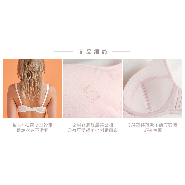 【EASY SHOP】萌萌小刺蝟-舒適美國棉軟鋼圈學生少女內衣-甜蜜粉A70|A80|B80|C70|C75|D70|A75|B70|D80|C65|B65|B75|C80|D75BrasEASY SHOP官方直營
