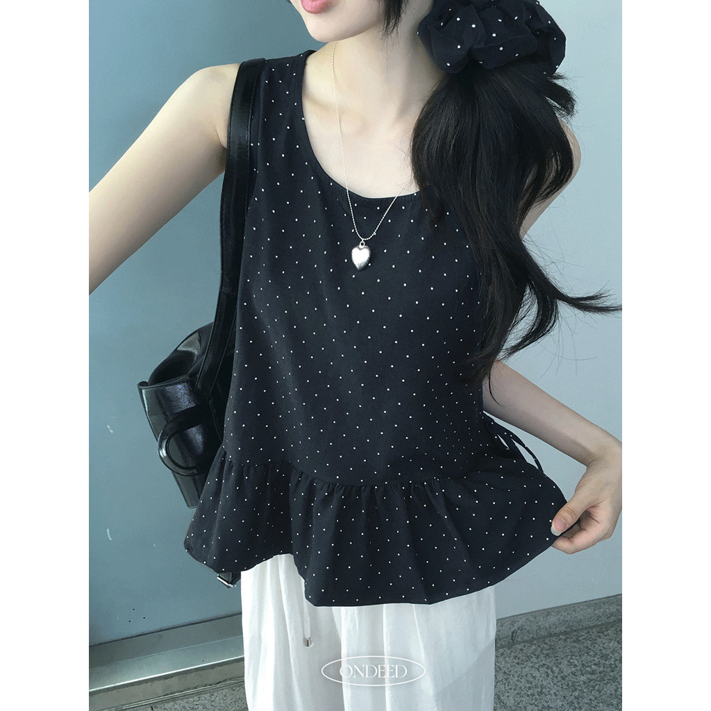 Codibook|韓國 ondeed 點點荷葉邊蝴蝶結分層無袖上衣[預購]無袖 雪紡襯衫 女裝象牙白,FREE|海軍藍,FREETanks & CamisolesCodibook 韓國女裝購物平台