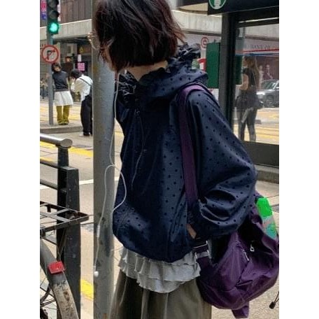 Codibook|韓國 DAILYJOU 運動點點荷葉邊寬鬆防風外套[預購]夾克 女裝黑色|深藍色(海軍藍)JacketsCodibook 韓國女裝購物平台
