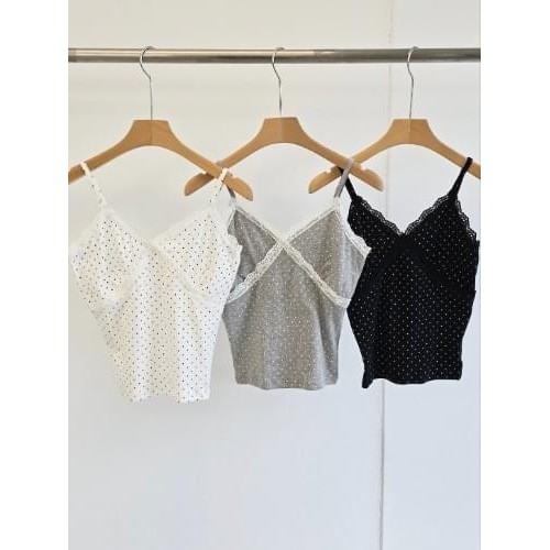 Codibook|韓國 E-PICK 白色蕾絲點點V領無袖上衣[預購]無袖 馬甲 女裝象牙白,Free|灰色,Free|黑色,FreeTanks & CamisolesCodibook 韓國女裝購物平台