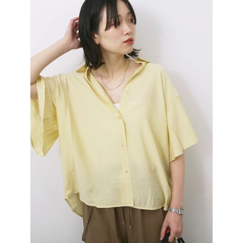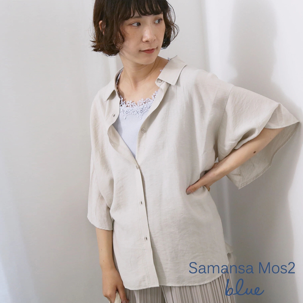 Samansa Mos2 blue 飄逸感喇叭袖排釦翻領襯衫(0F000992910)淺米白F|黃色F|淡青色FShirts & Blousesearth music&ecology Select Store