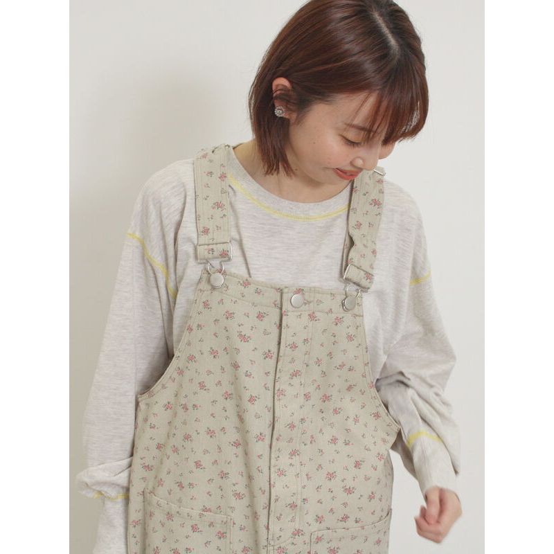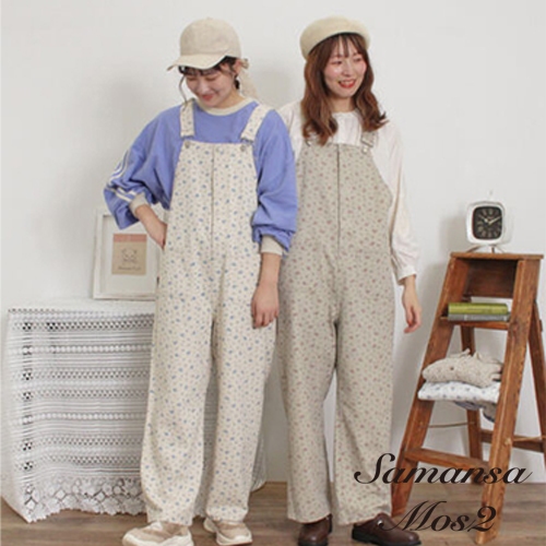 Samansa Mos2 定番素面/碎花牛仔吊帶褲(0F000552910)灰色F|黑色F|藍色F|奶油色FOverallsearth music&ecology Select Store