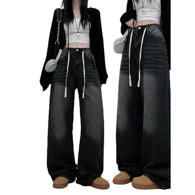 Codibook|韓國 ccomeng 抽繩水洗寬腿牛仔褲[預購]牛仔褲 女裝深藍色,S|深藍色,L|黑丹寧,L|深藍色,M|黑丹寧,M|天空藍,L|天空藍,S|黑丹寧,S|天空藍,MCodibook 韓國女裝購物平台