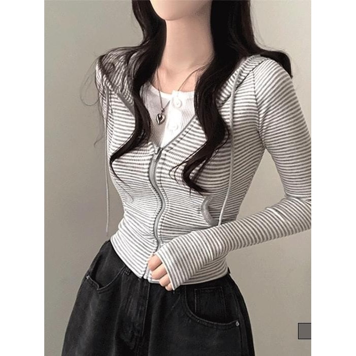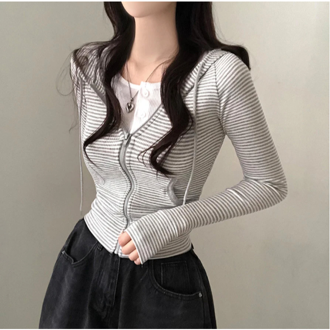 Codibook|韓國 gifteabox 萊利條紋修身連帽外套[預購]拉鍊外套 女裝灰色,free|黑色,freeJacketsCodibook 韓國女裝購物平台
