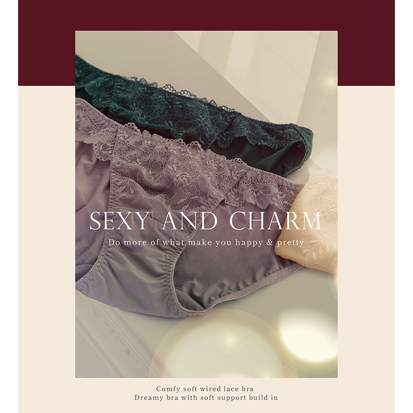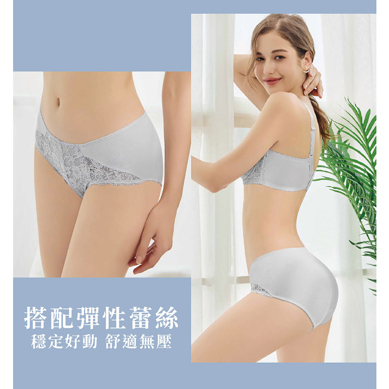 【EASY SHOP】Miss Audrey-美胸增乳-細帶蕾絲性感低腰三角內褲-灰L|LL|MPantiesEASY SHOP官方直營