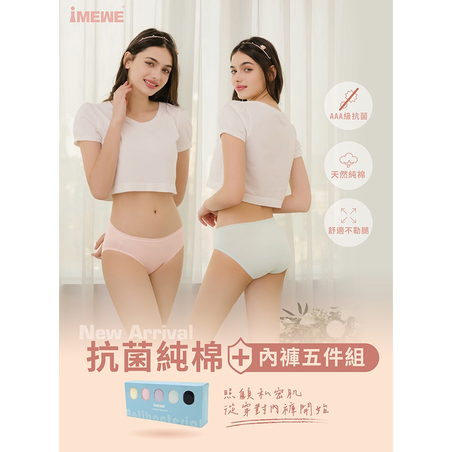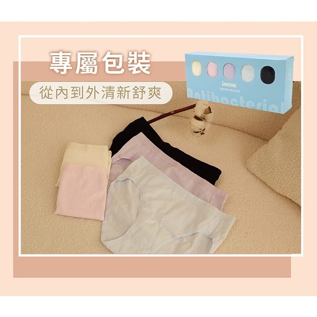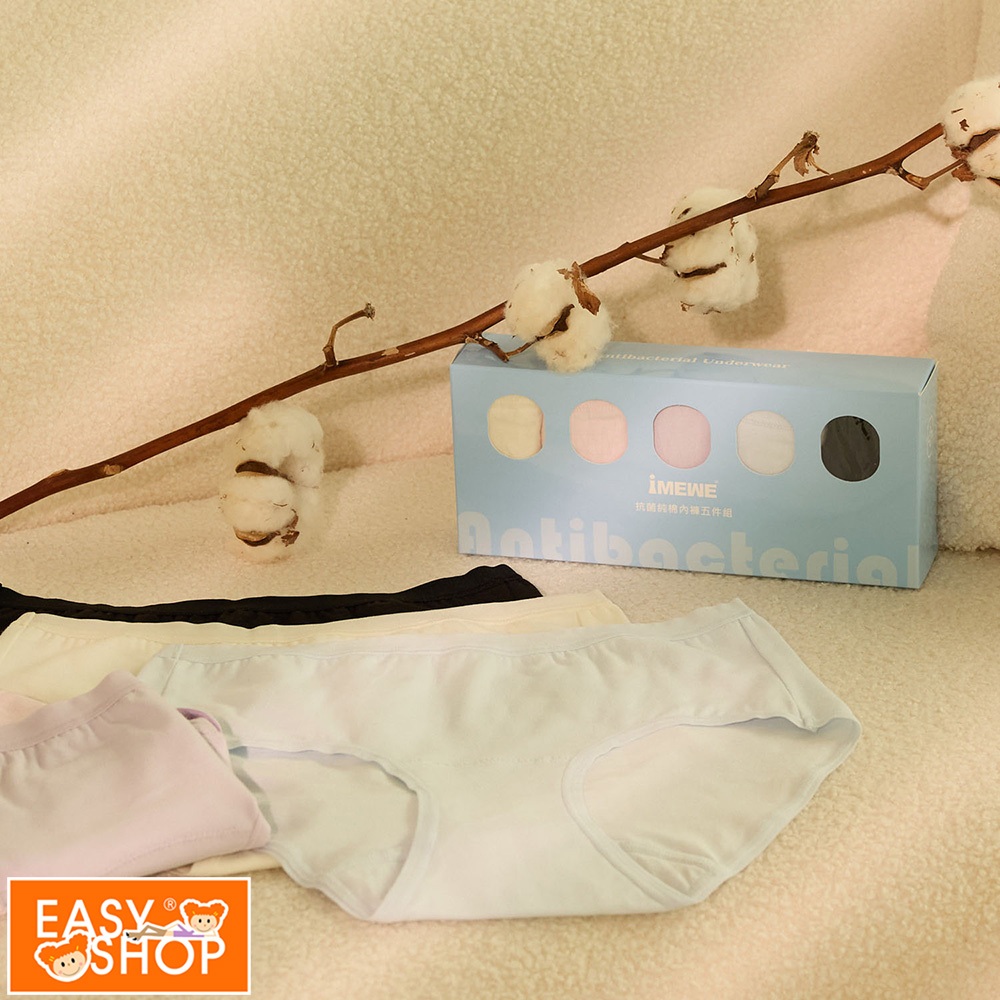 【EASY SHOP】iMEWE-抗菌純棉盒褲五件組-中腰三角內褲-雲朵粉彩色系LL|3L|M|LPantiesEASY SHOP官方直營
