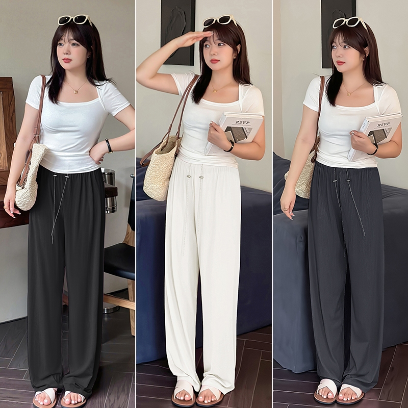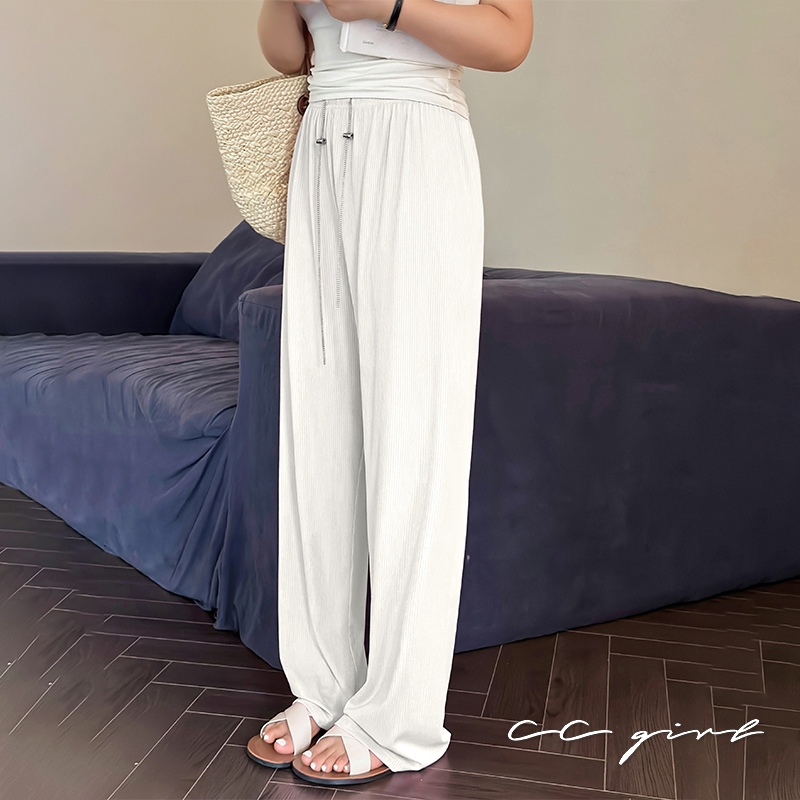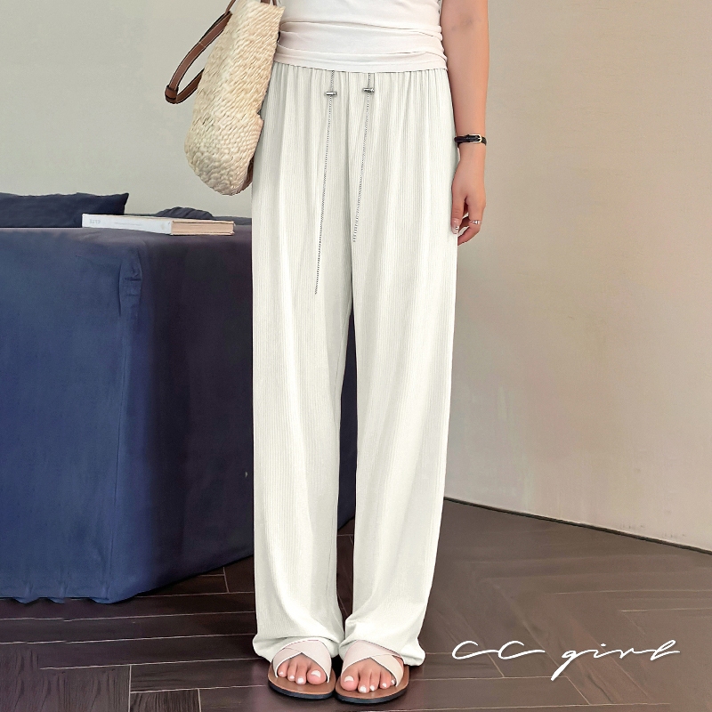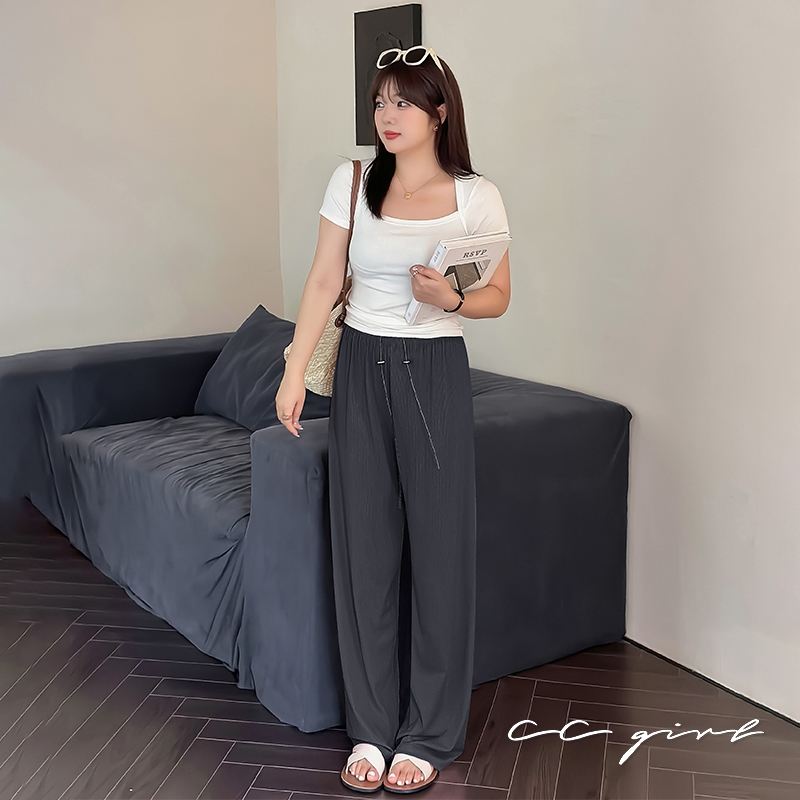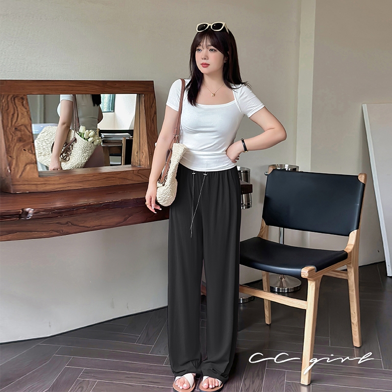CCGIRL中大尺碼 時髦垂墜感冰絲坑紋落地涼感寬褲(全鬆緊+無口袋)-共3色-適XL~5L《20610》深灰藍,XL|深灰藍,2L|深灰藍,3L|深灰藍,4L|深灰藍,5L|微透白,XL|微透白,2L|微透白,3L|微透白,4L|微透白,5L|經典黑,XL|經典黑,2L|經典黑,3L|經典黑,4L|經典黑,5LPantsCCGIRL中大尺碼女裝