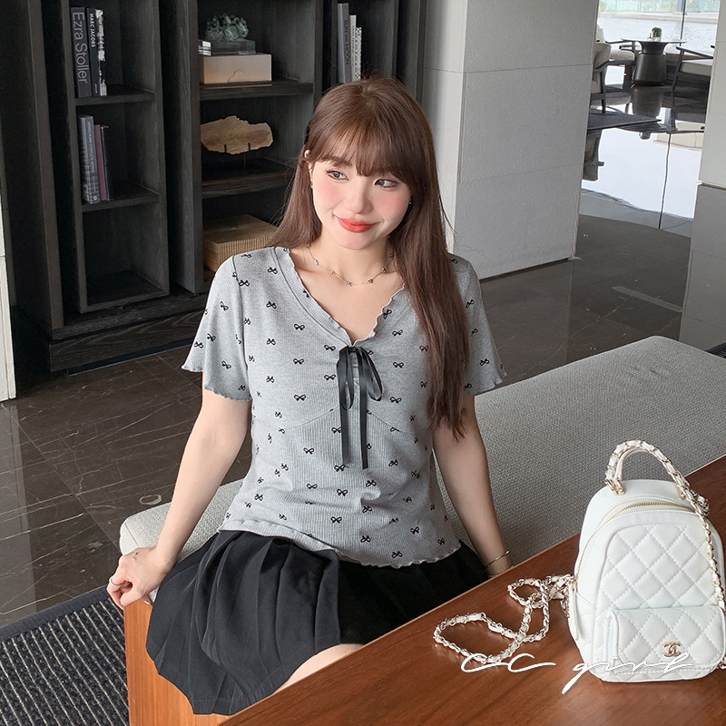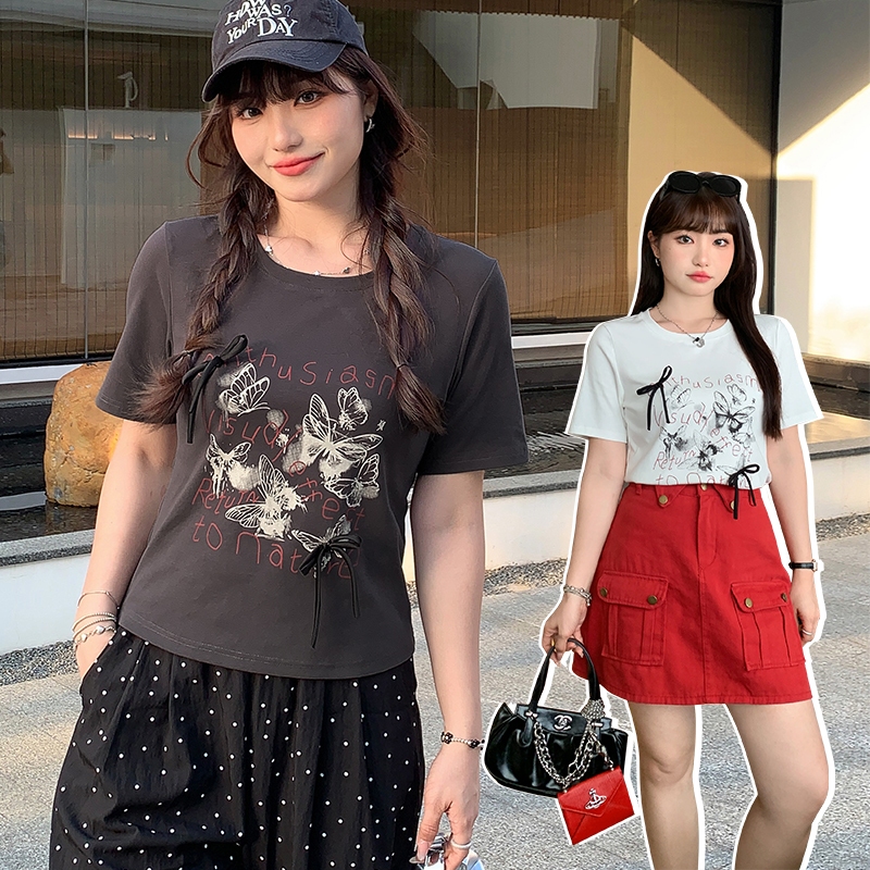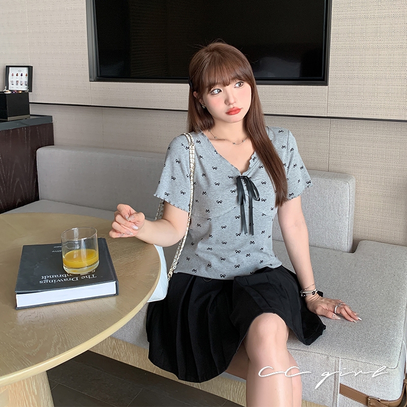 CCGIRL中大尺碼 裝飾蝴蝶結♡輕熟辣性感甜印花圓領短袖上衣-共2色-適XL~5L《20633》大尺碼女裝大尺碼上衣短版上衣-沉穩深灰,XL(不喜歡穿合身建議拿大一碼)|短版上衣-沉穩深灰,2L(不喜歡穿合身建議拿大一碼)|短版上衣-沉穩深灰,3L(不喜歡穿合身建議拿大一碼)|短版上衣-沉穩深灰,4L(不喜歡穿合身建議拿大一碼)|短版上衣-沉穩深灰,5L(不喜歡穿合身建議拿大一碼)|短版上衣-氣質米白,XL(不喜歡穿合身建議拿大一碼)|短版上衣-氣質米白,2L(不喜歡穿合身建議拿大一碼)|短版上衣-氣質米白,3L(不喜歡穿合身建議拿大一碼)|短版上衣-氣質米白,4L(不喜歡穿合身建議拿大一碼)|短版上衣-氣質米白,5L(不喜歡穿合身建議拿大一碼)T-shirtsCCGIRL中大尺碼女裝