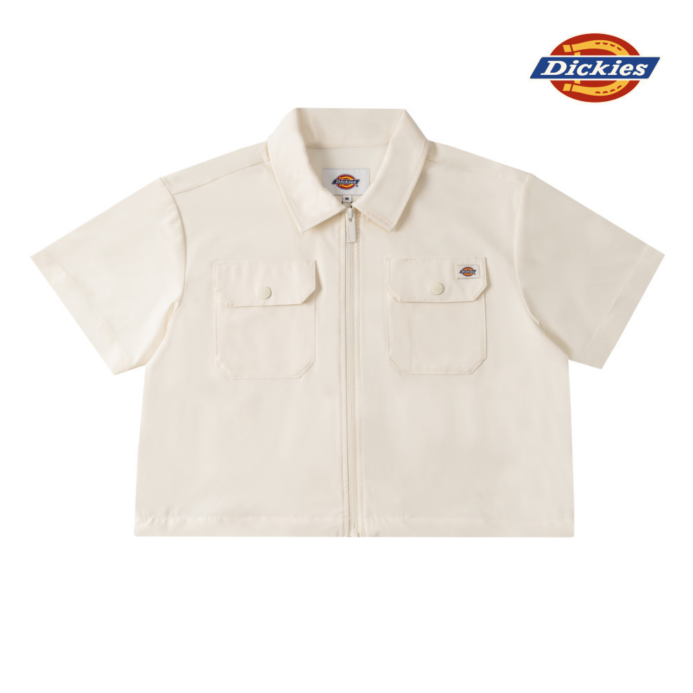 Dickies女款米白色胸前雙口袋拉鍊開襟設計短版工裝短袖襯衫|DK0A87T8C48XS|S|M|L|XL|2XL|3XLShirts & BlousesDickies Taiwan 官方直營店