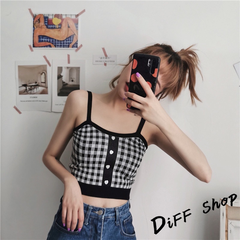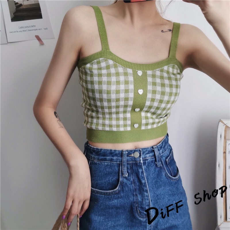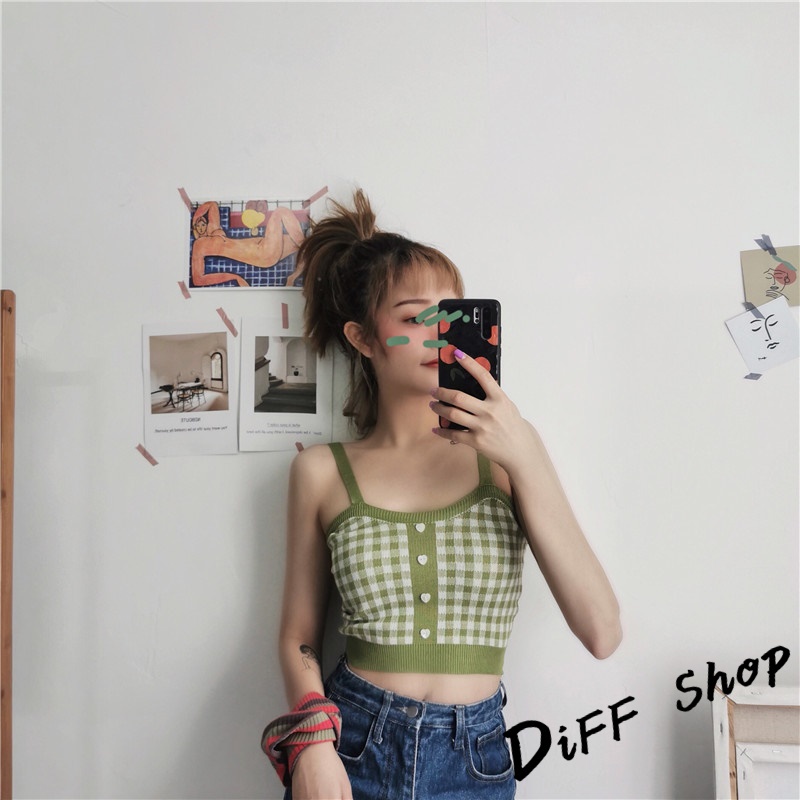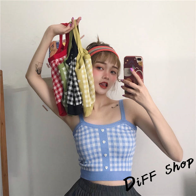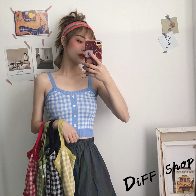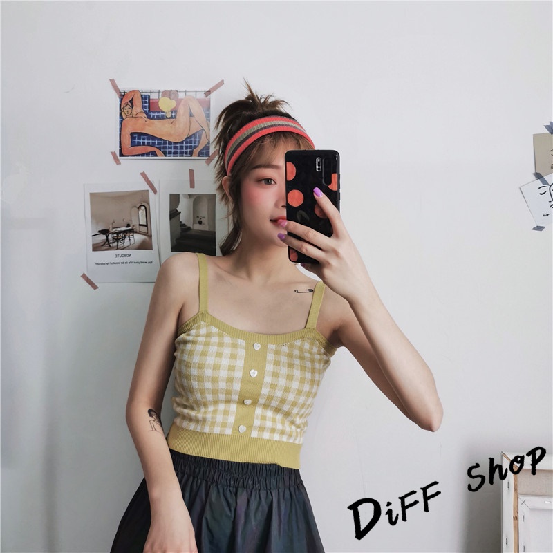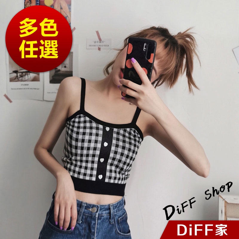 【DIFF】韓版氣質學院風格子背心 上衣 小可愛 女裝 背心女 衣服 短版上衣 冰絲背心【V198】【V198】黑|【V198】抹茶綠|【V198】姜黃|【V198】紅|【V198】粉Tanks & CamisolesDiFF shop