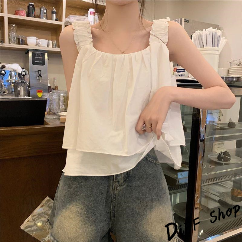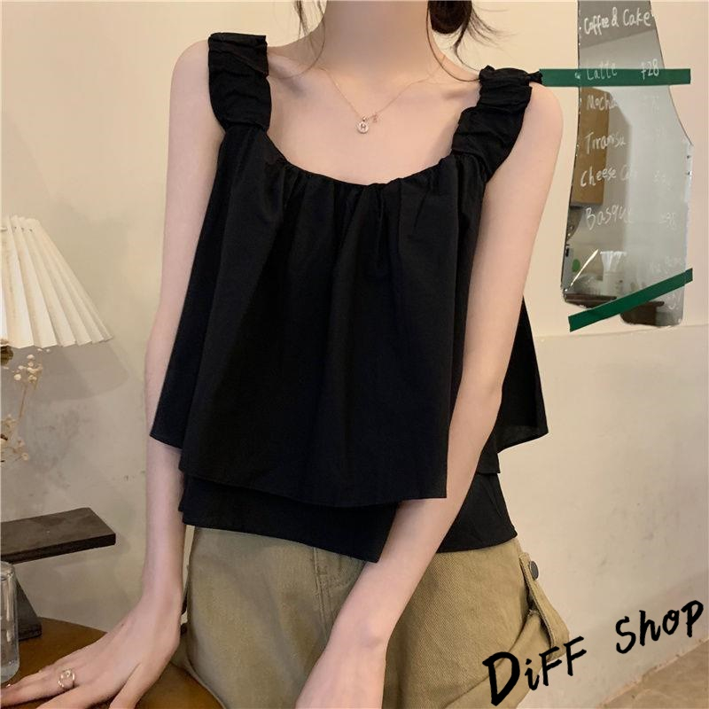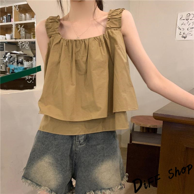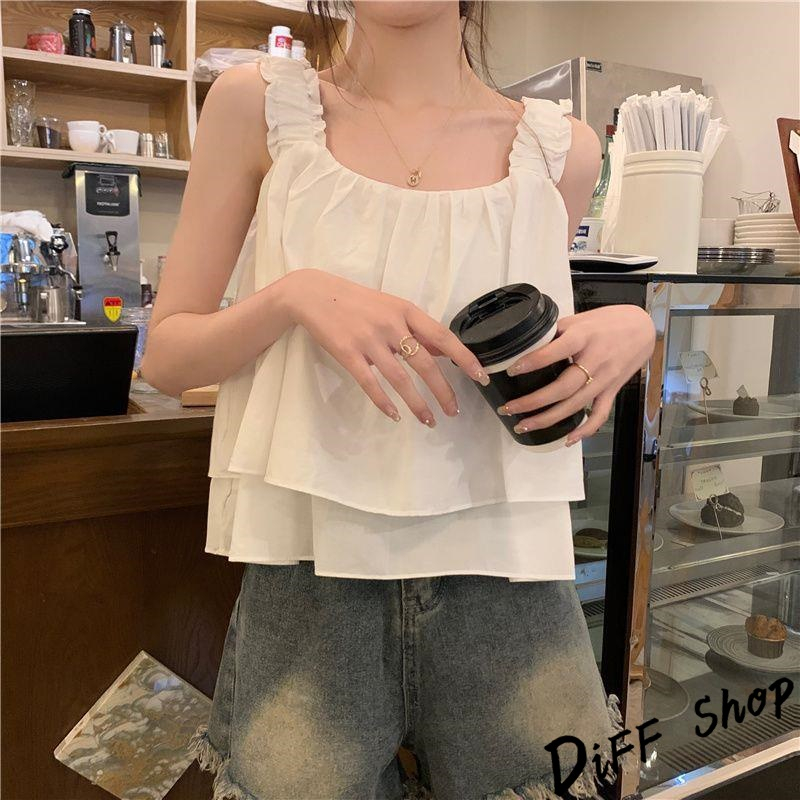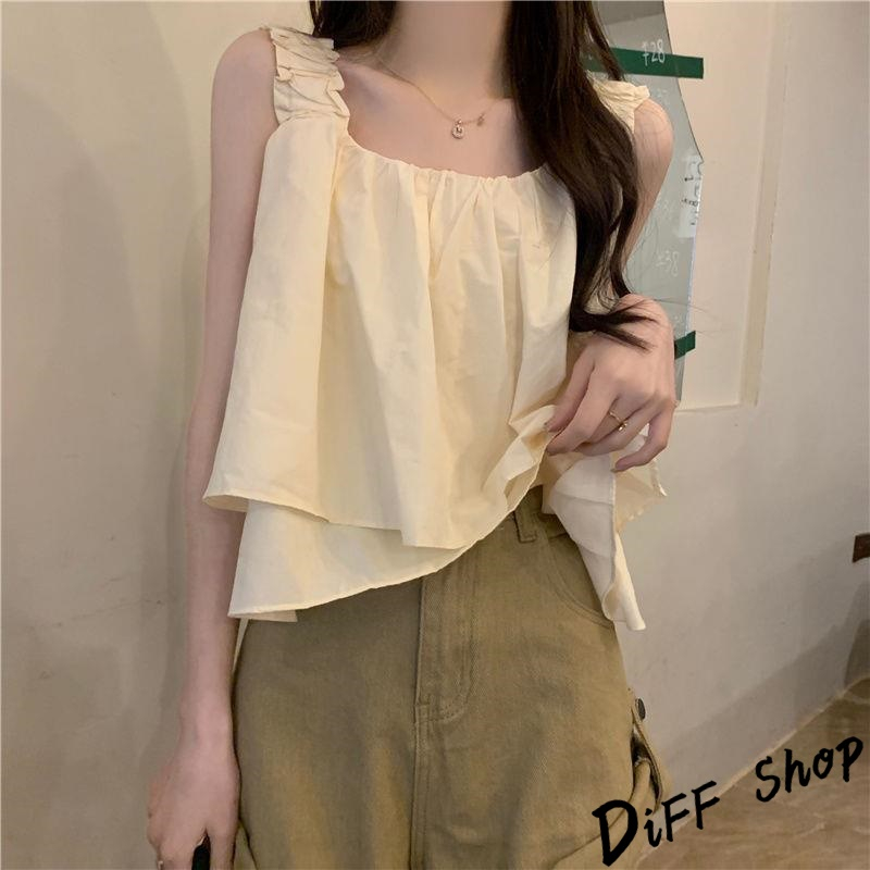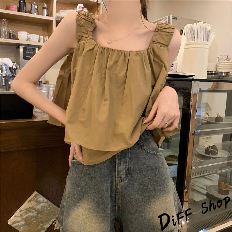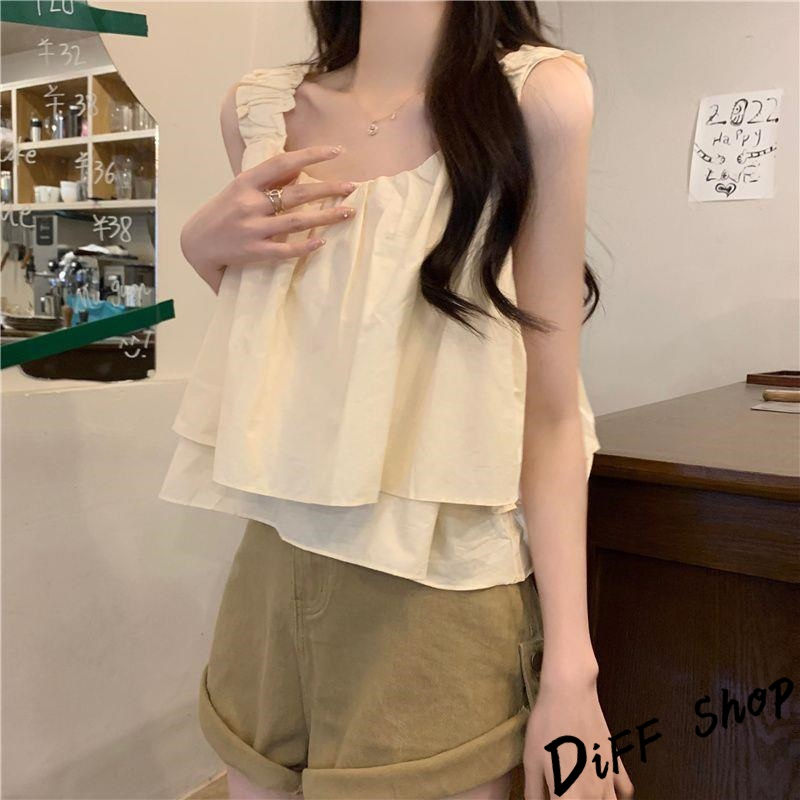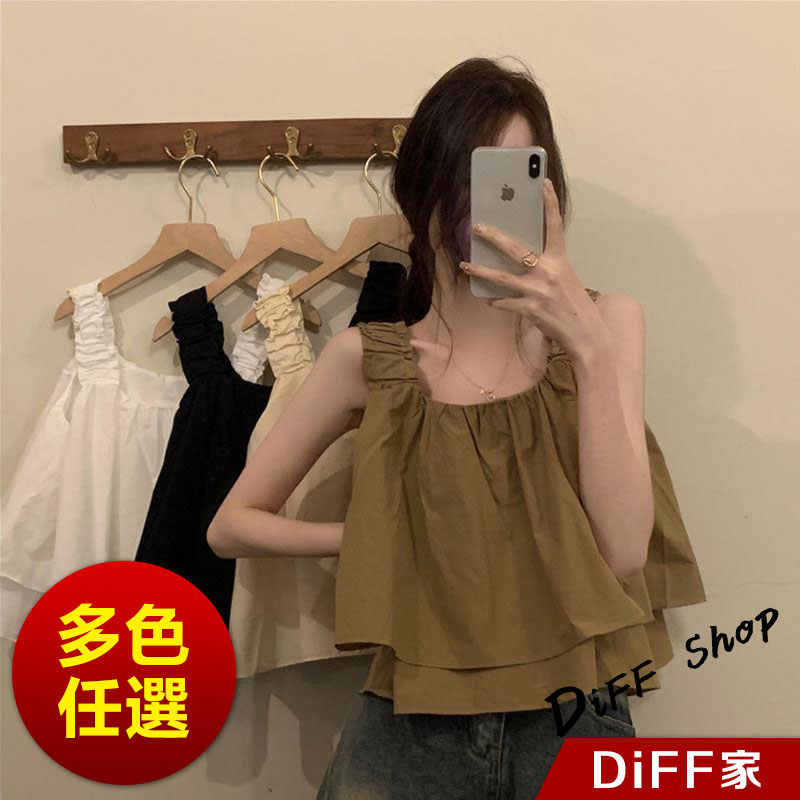 【DIFF】韓版法式氣質寬鬆顯瘦裙襬背心 上衣 小可愛 女裝 衣服 短版上衣 短板上衣 夏天女裝 短版背心【V313】【V313】卡其色|【V313】黑色|【V313】白色|【V313】杏色Tanks & CamisolesDiFF shop