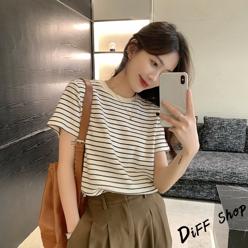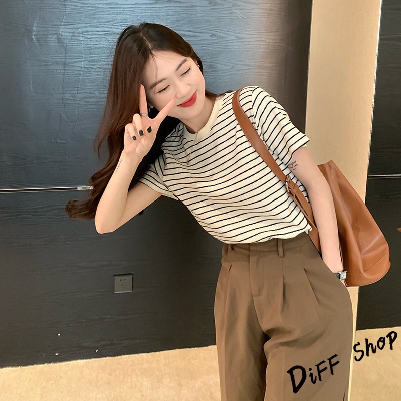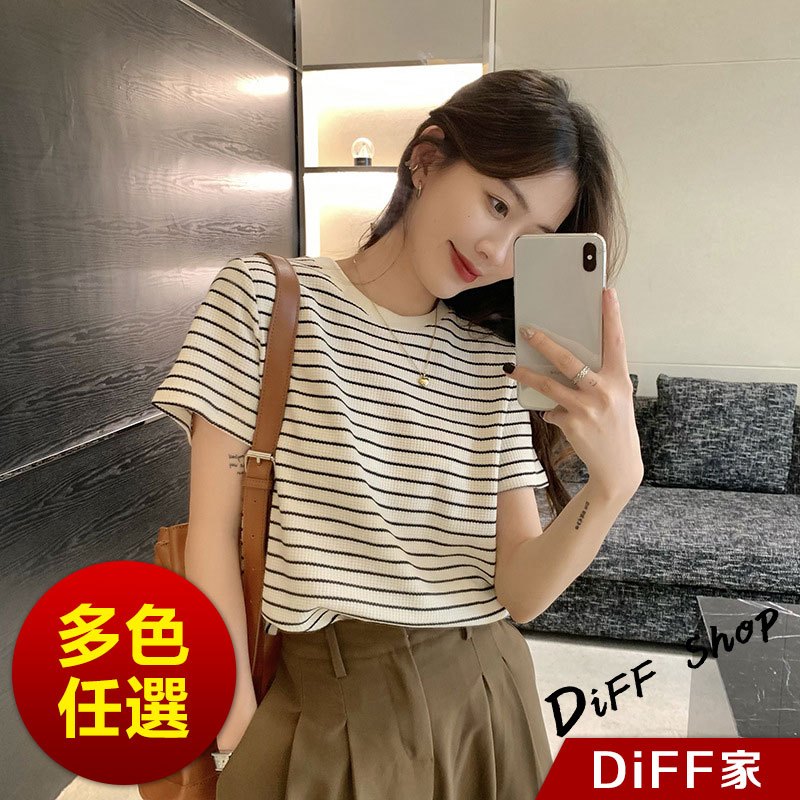 【DIFF】韓版復古條紋寬鬆短袖上衣 短袖t恤 女裝 顯瘦上衣 衣服 寬鬆上衣 素T【T595】【T595】杏色T-shirtsDiFF shop