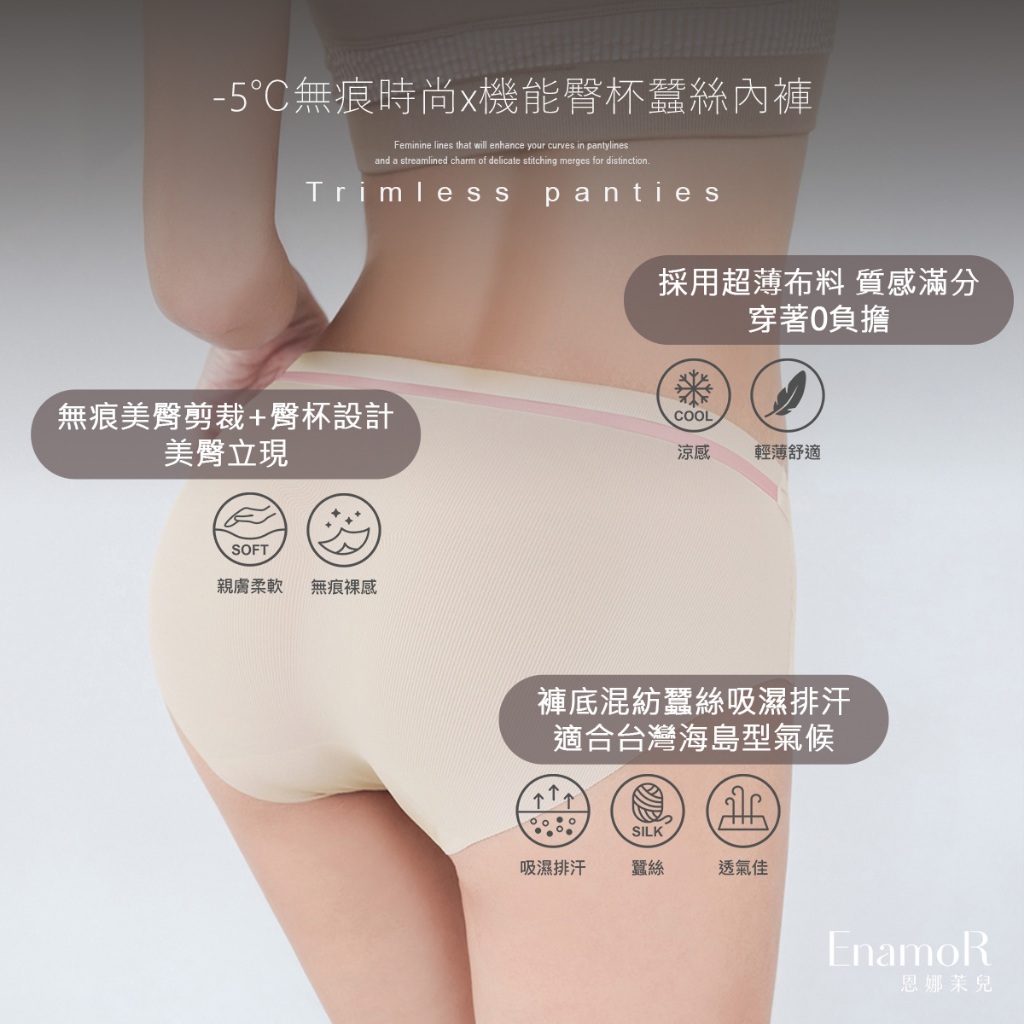 【EnamoR】aiR-5℃無痕臀杯蠶絲內褲【中低腰】獨家不卡臀美尻臀杯設計 涼感 夏天 快速出貨女裝大尺碼 涼褲女_+淺杏,M|淺杏,XL|淺杏,L|抹茶綠,XL|抹茶綠,L|抹茶綠,M|玫瑰粉,M|玫瑰粉,L|薄荷,M|薄荷,L|薄荷,XL|白皙膚,M|白皙膚,L|白皙膚,XL|玫瑰粉,XL|黑,M|黑,L|黑,XLPantiesEnamoR恩娜茉兒-官方旗艦店