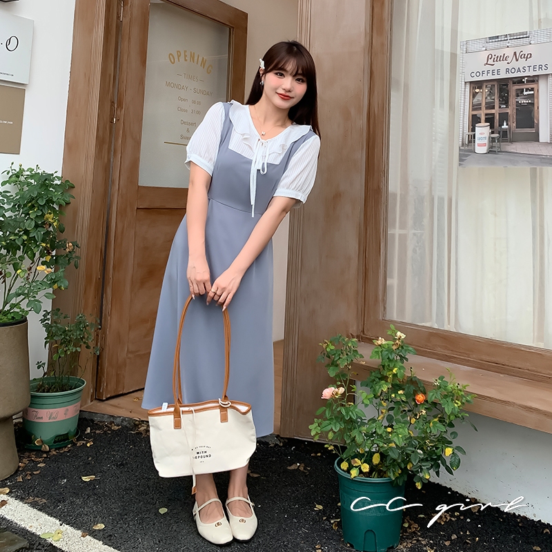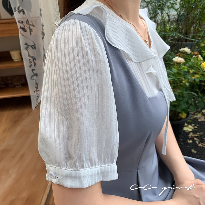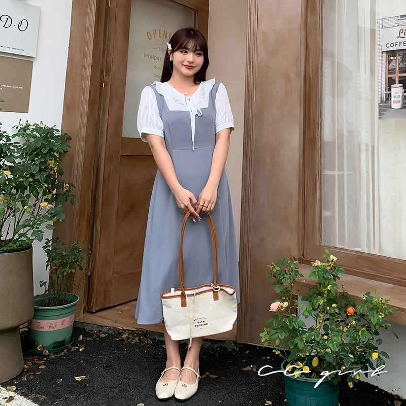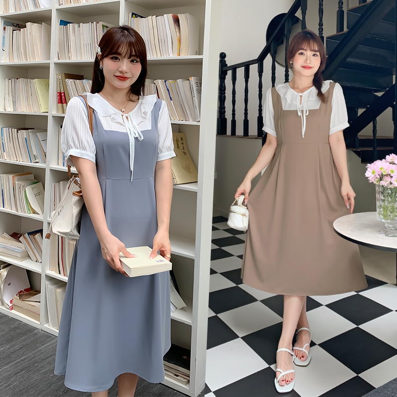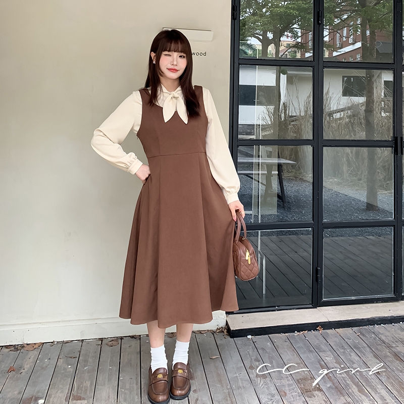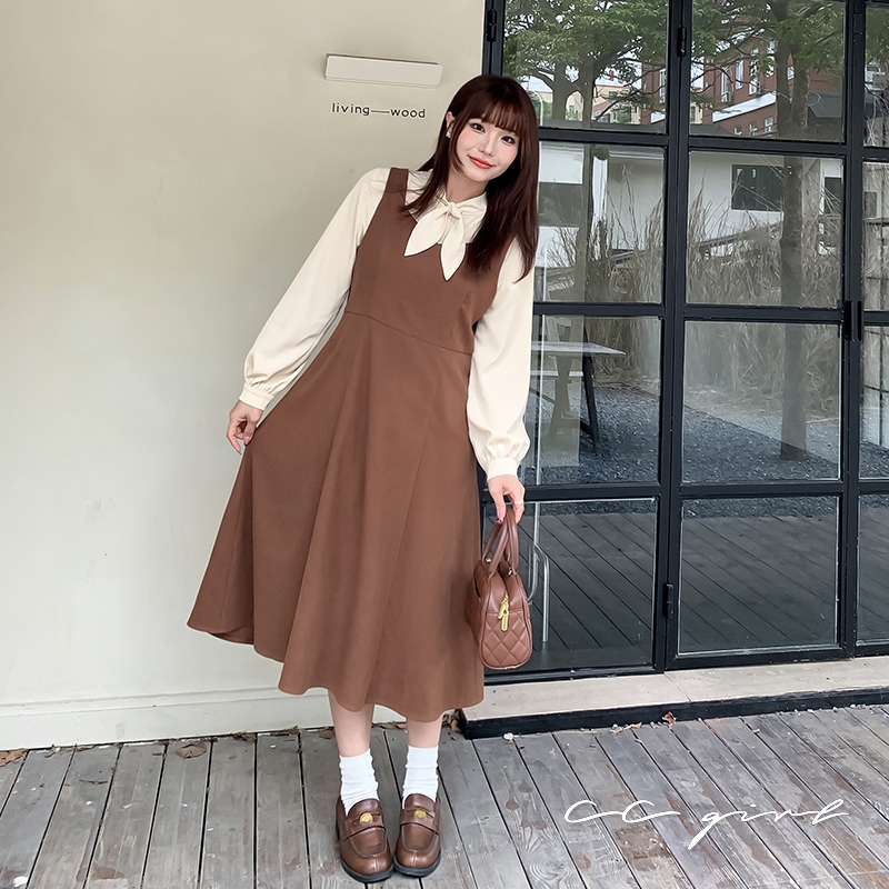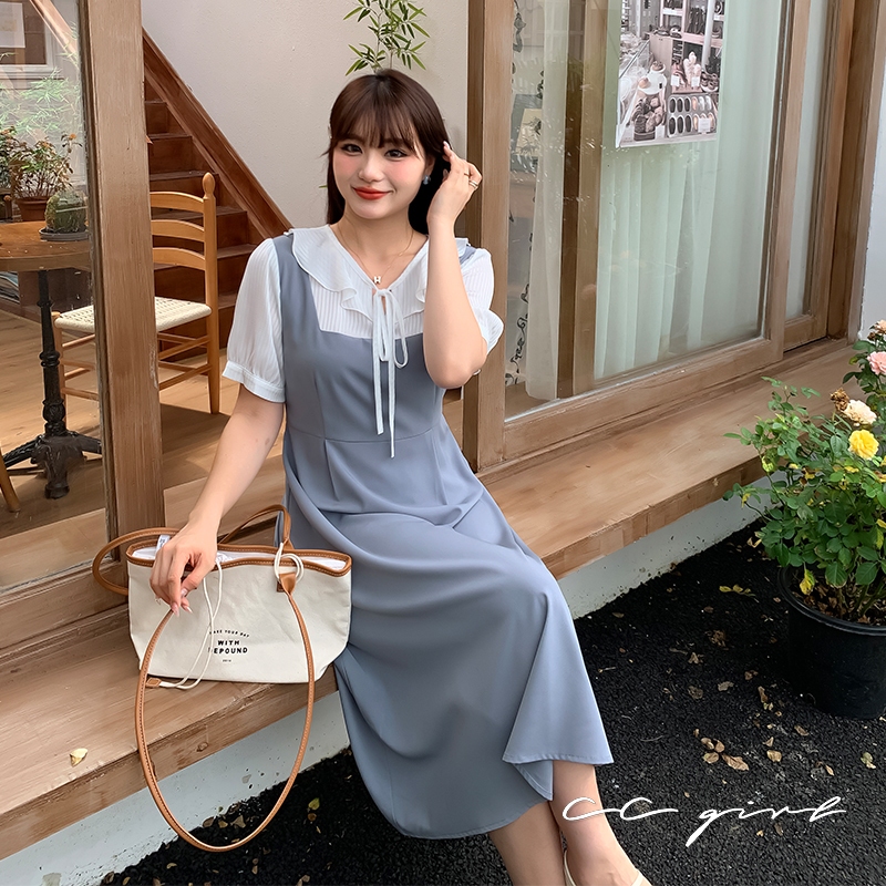 CCGIRL中大尺碼 浪漫情節荷葉領繫帶假兩件洋裝-共2色- 適M~5L《 31713 》大尺碼女裝 中大尺碼洋裝