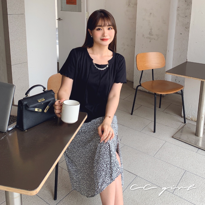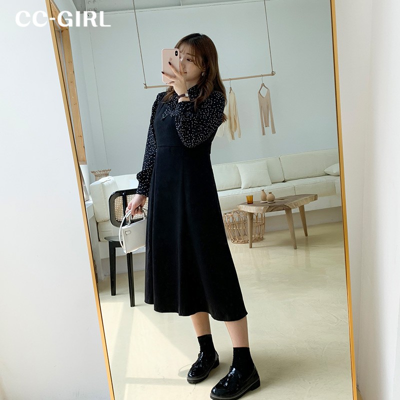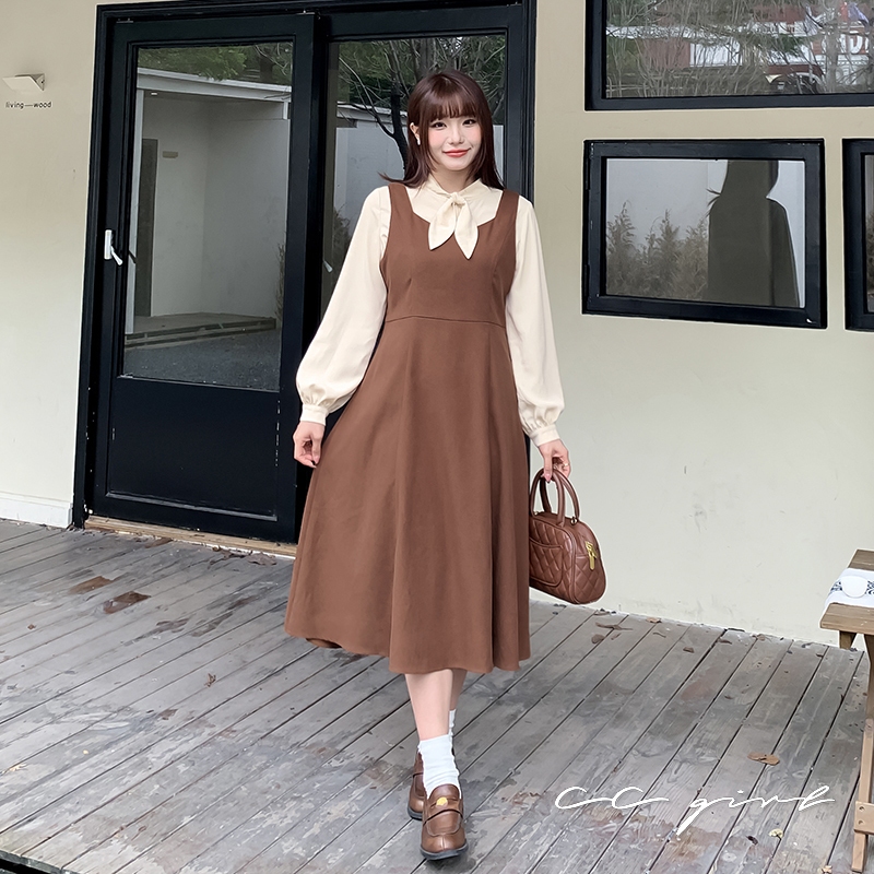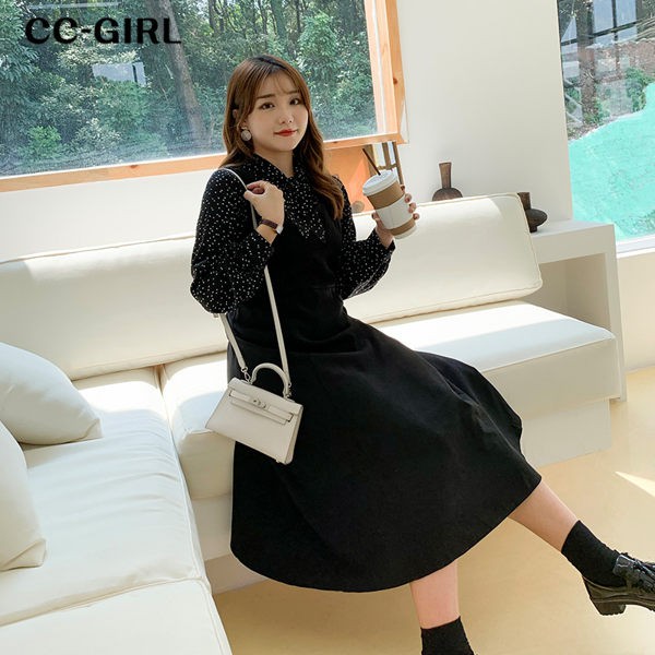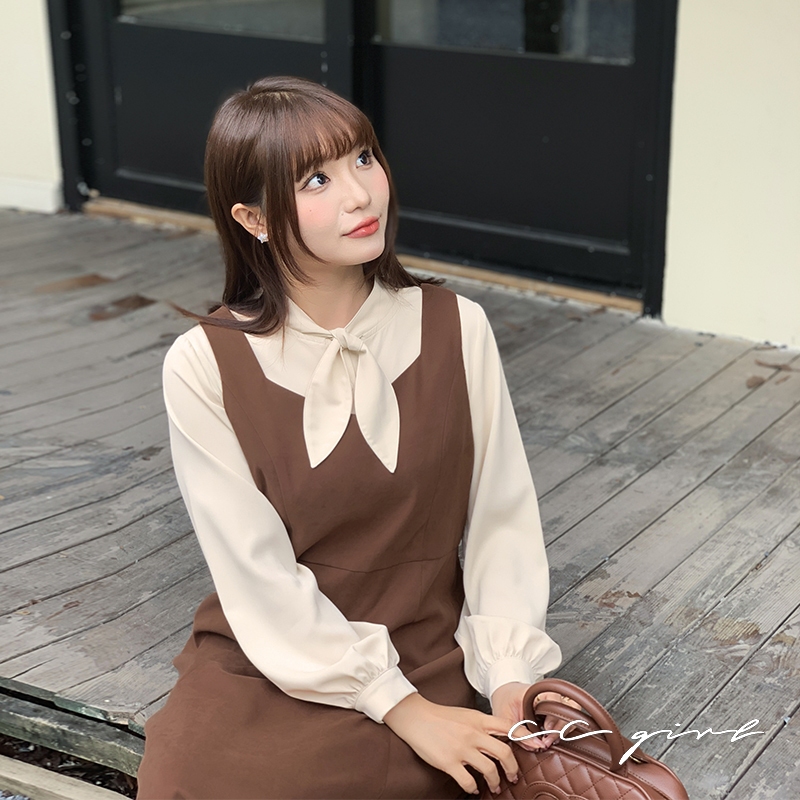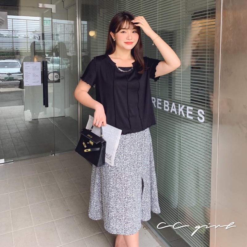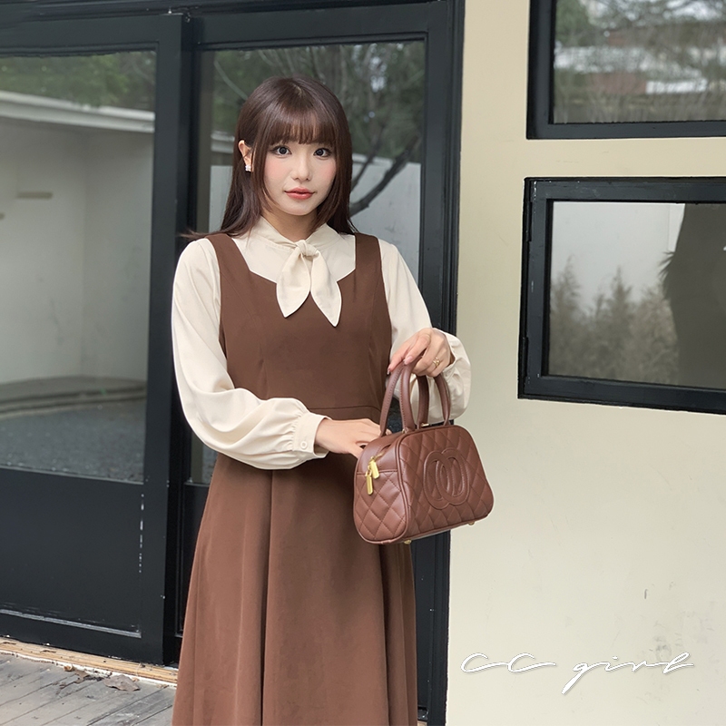 CCGIRL中大尺碼 浪漫情節荷葉領繫帶假兩件洋裝-共2色- 適M~5L《 31713 》大尺碼女裝 中大尺碼洋裝