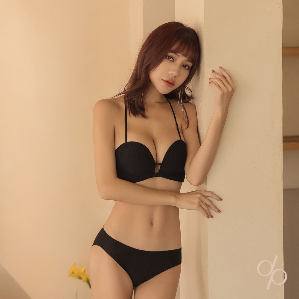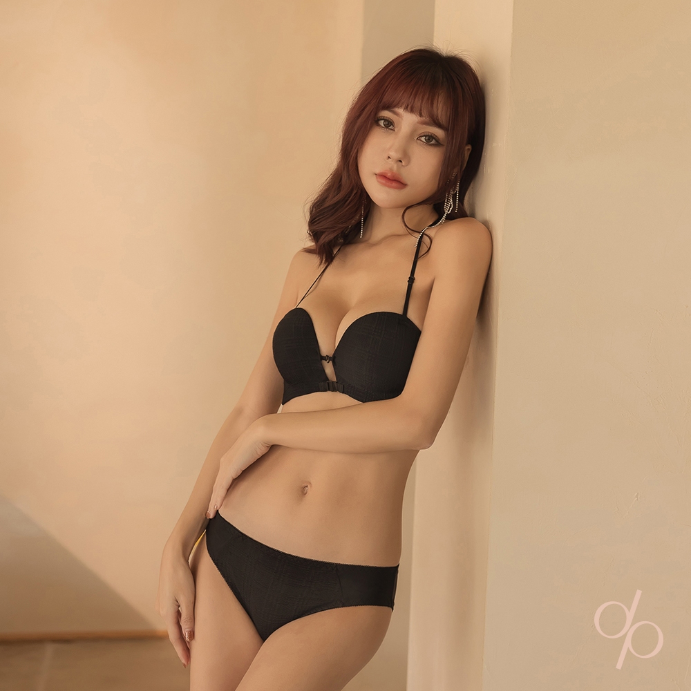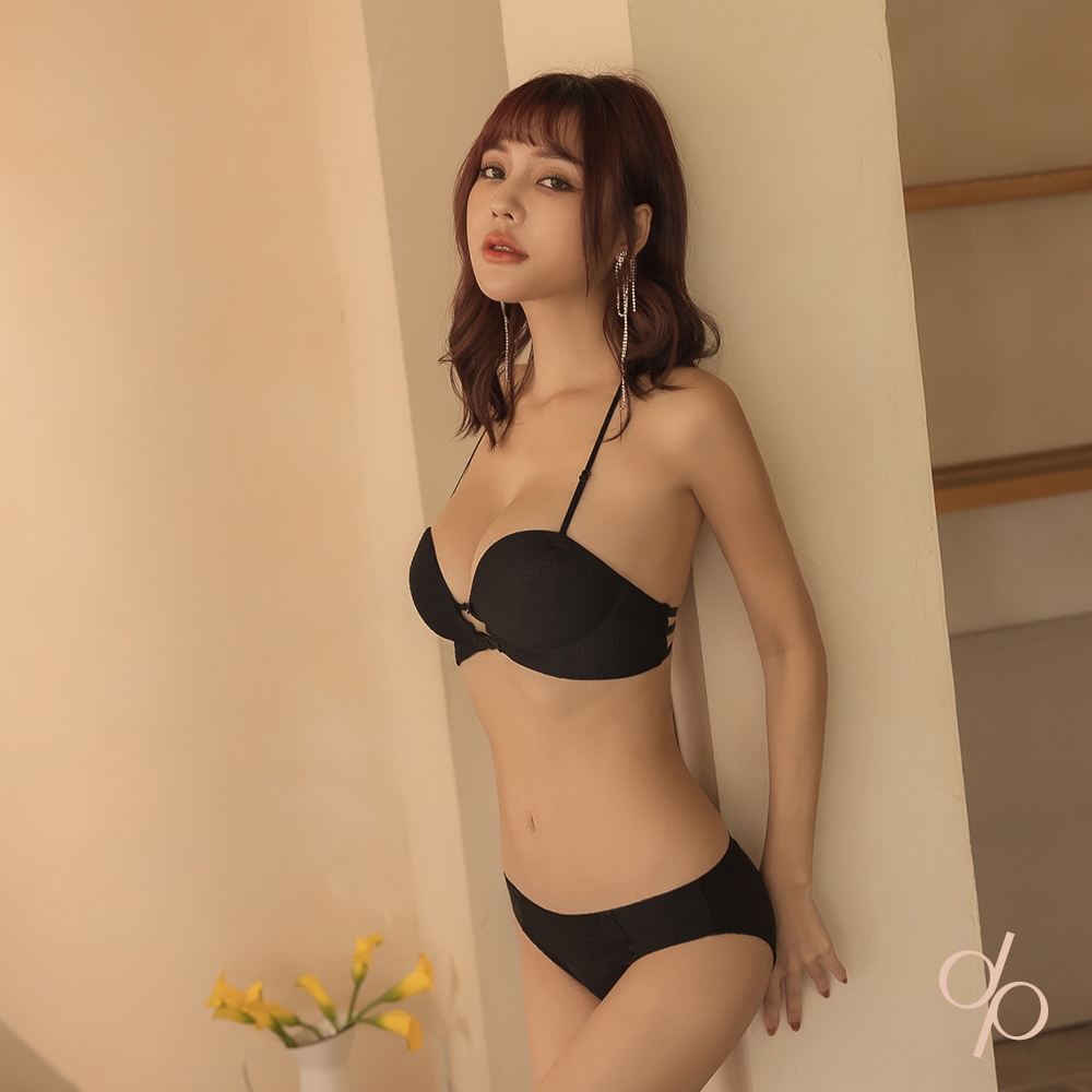 【DEPIC】爆乳雙前釦手掌杯泡泡布無鋼圈細肩帶美背內衣組(黑色)|dp select黑色80|黑色85|黑色70|黑色75SetsDEPIC