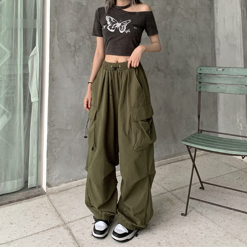 【DIFF】韓版復古設計感寬鬆束腳工裝褲 寬褲 褲子 長褲 休閒褲 女裝 高腰褲 拖地褲 直筒褲 黑褲【P267】【P267】杏色L號|【P267】軍綠S號|【P267】軍綠XL號|【P267】黑色S號|【P267】黑色M號|【P267】黑色L號|【P267】黑色XL號|【P267】杏色M號|【P267】軍綠M號|【P267】軍綠L號|【P267】杏色S號|【P267】杏色XL號PantsDiFF shop