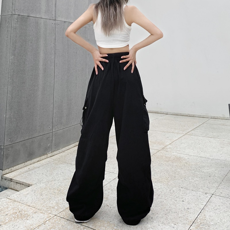 【DIFF】韓版復古設計感寬鬆束腳工裝褲 寬褲 褲子 長褲 休閒褲 女裝 高腰褲 拖地褲 直筒褲 黑褲【P267】