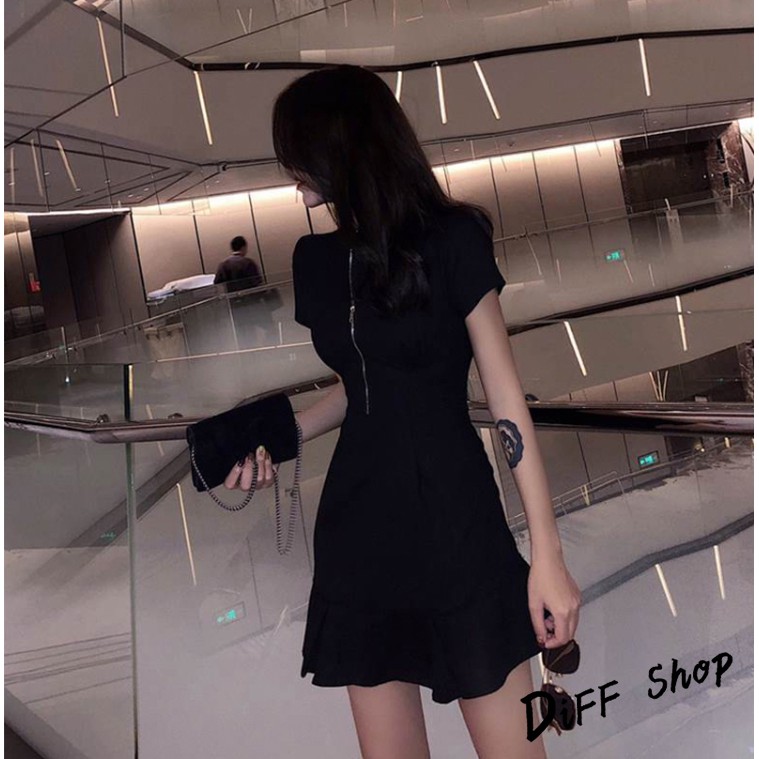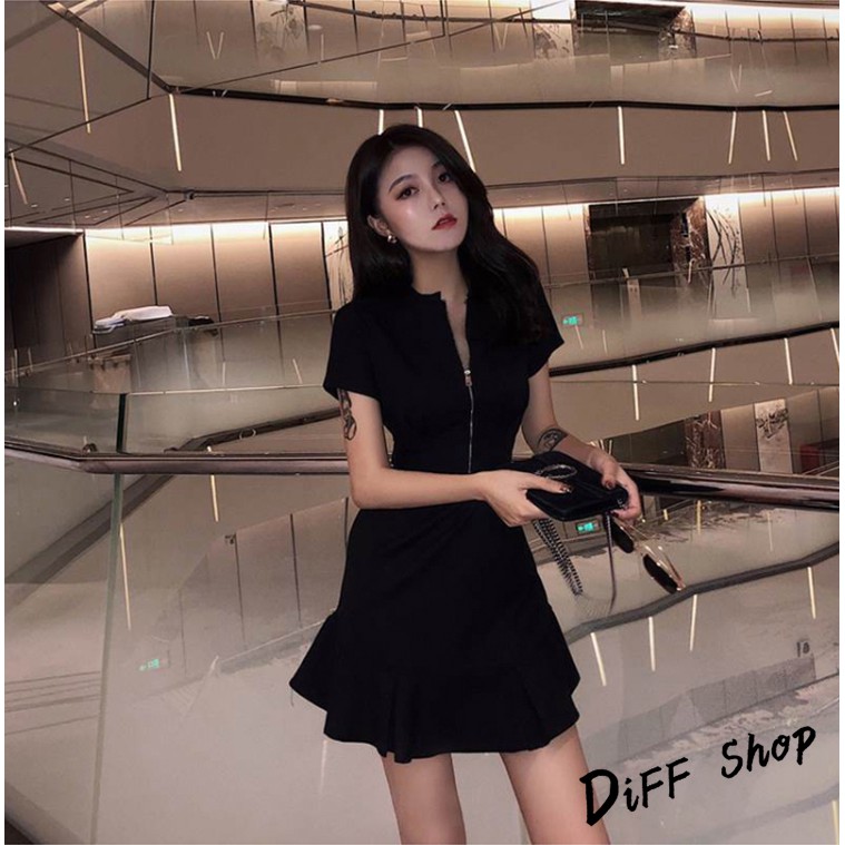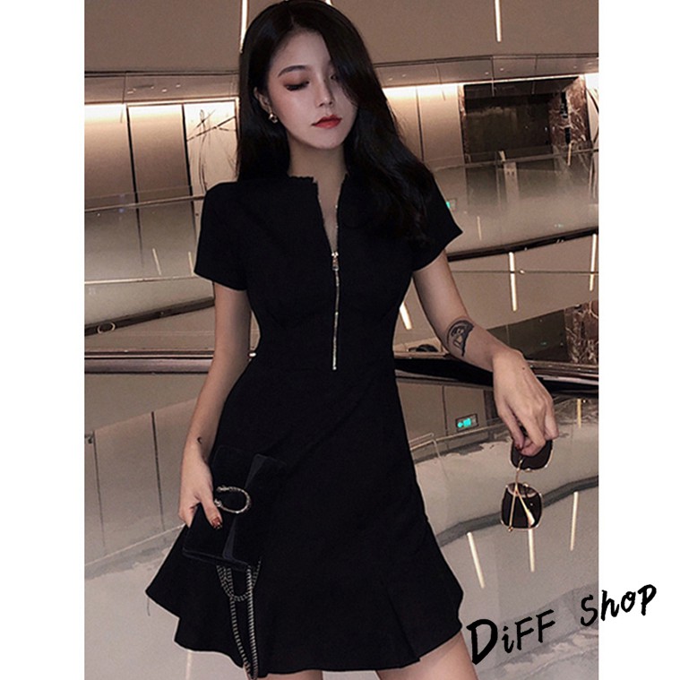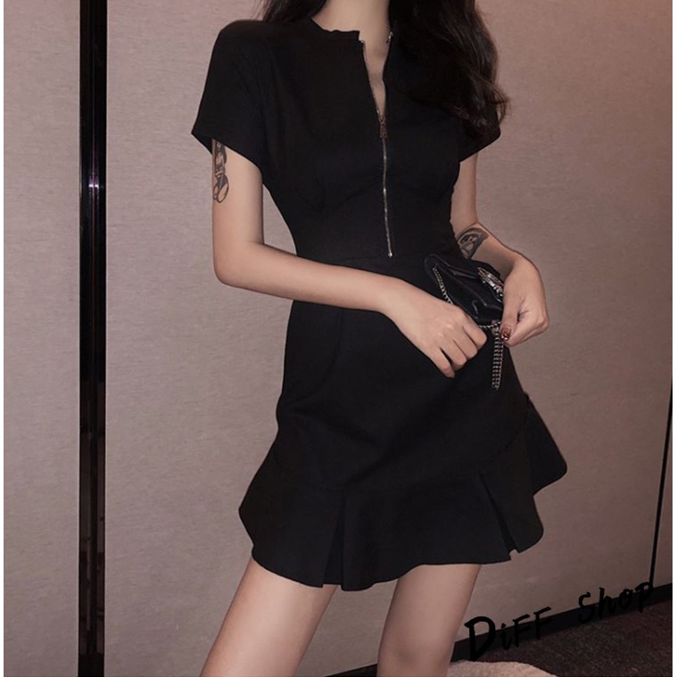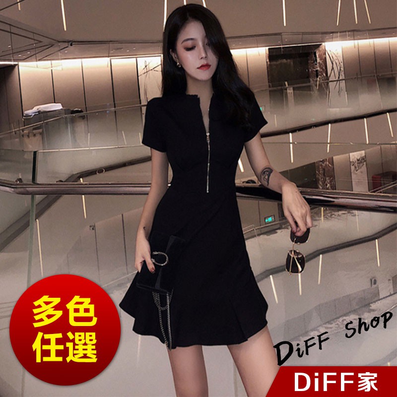 【DIFF】韓版新款極簡主義心機拉鍊黑色洋裝 套裝 小黑裙 連衣裙 裙子 衣服 女裝 上衣 約會 禮服【T214】【T214】黑色M號|【T214】黑色L號|【T214】黑色XL號DiFF shop