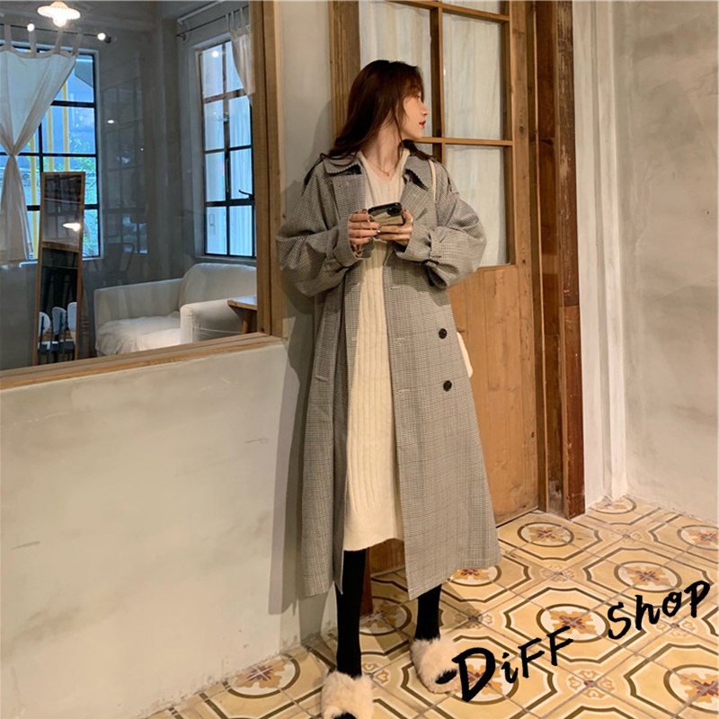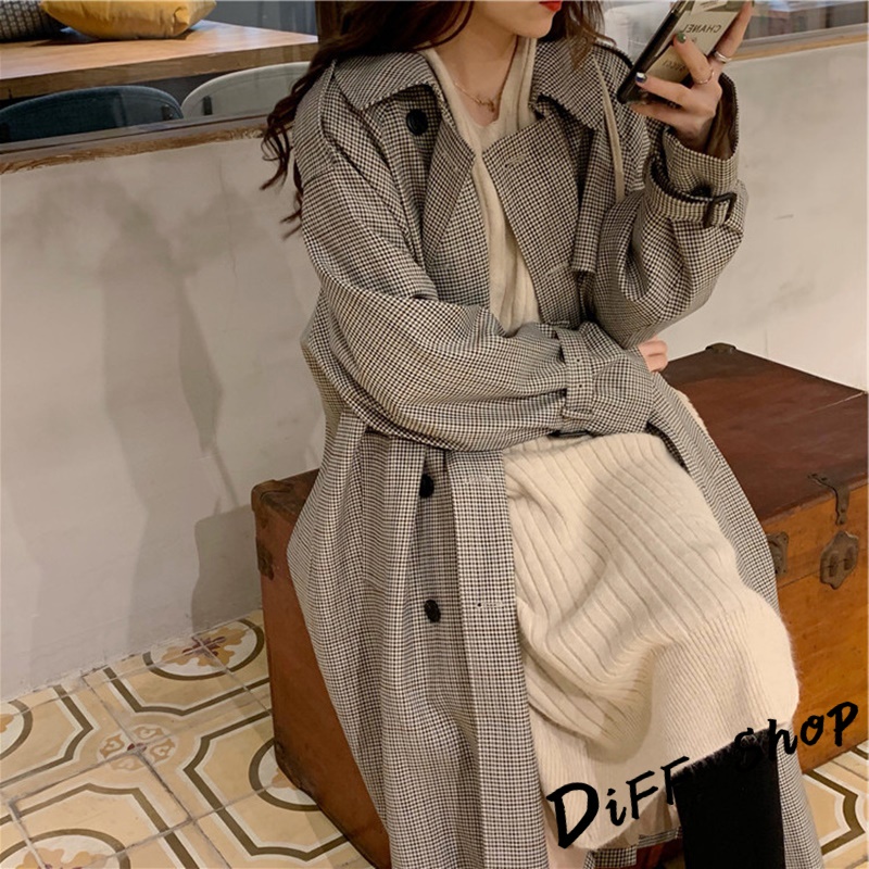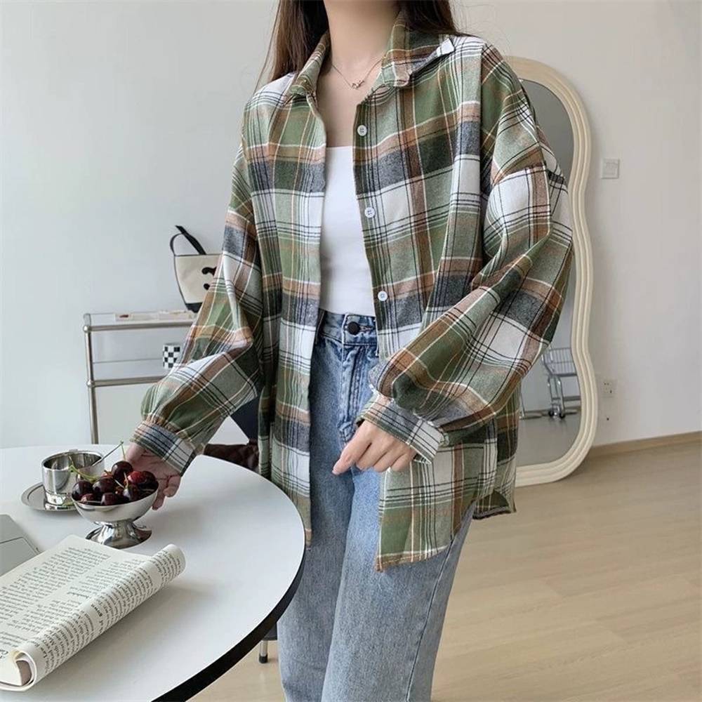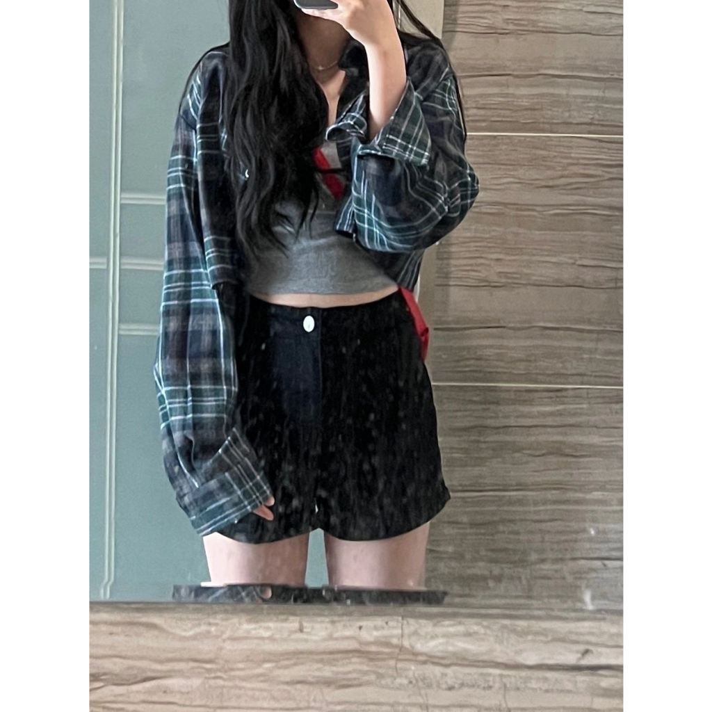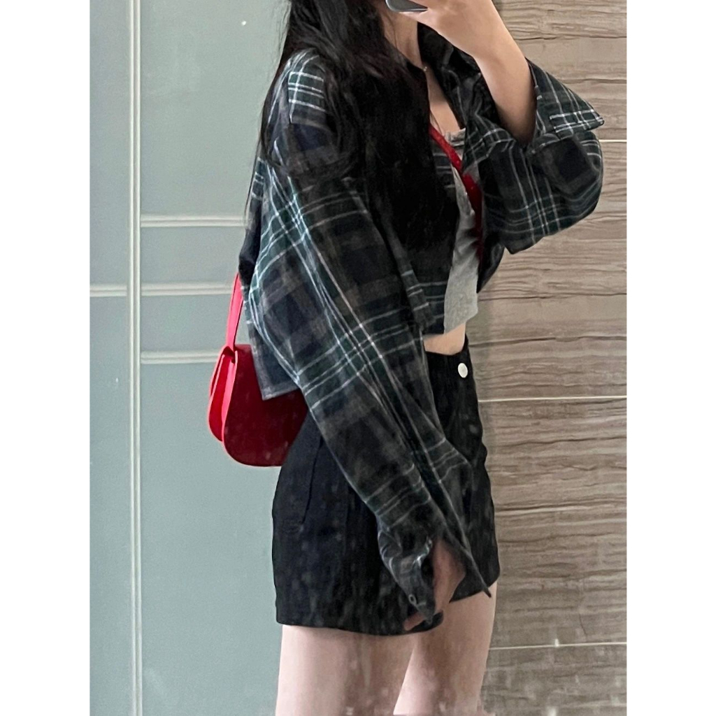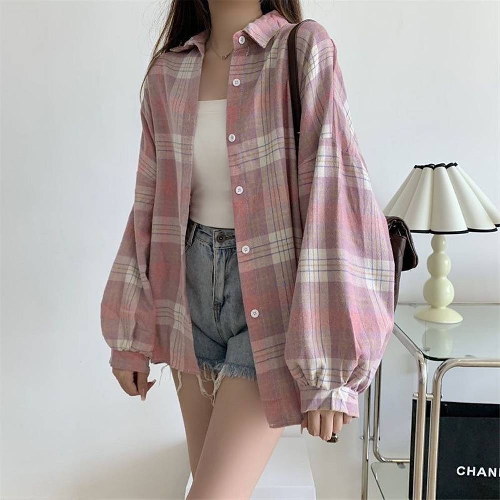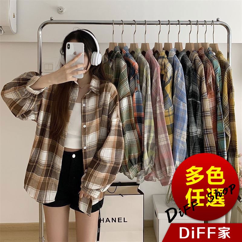 【DIFF】韓版寬鬆復古格紋襯衫 上衣 女裝 衣服 薄外套 罩衫 防曬外套 小外套 夏天女裝【J385】【J385】藏青色|【J385】咖藍|【J385】黑粉|【J385】黑白Shirts & BlousesDiFF shop