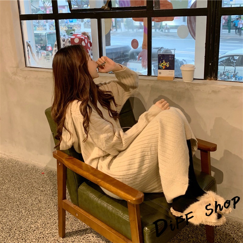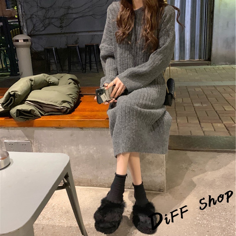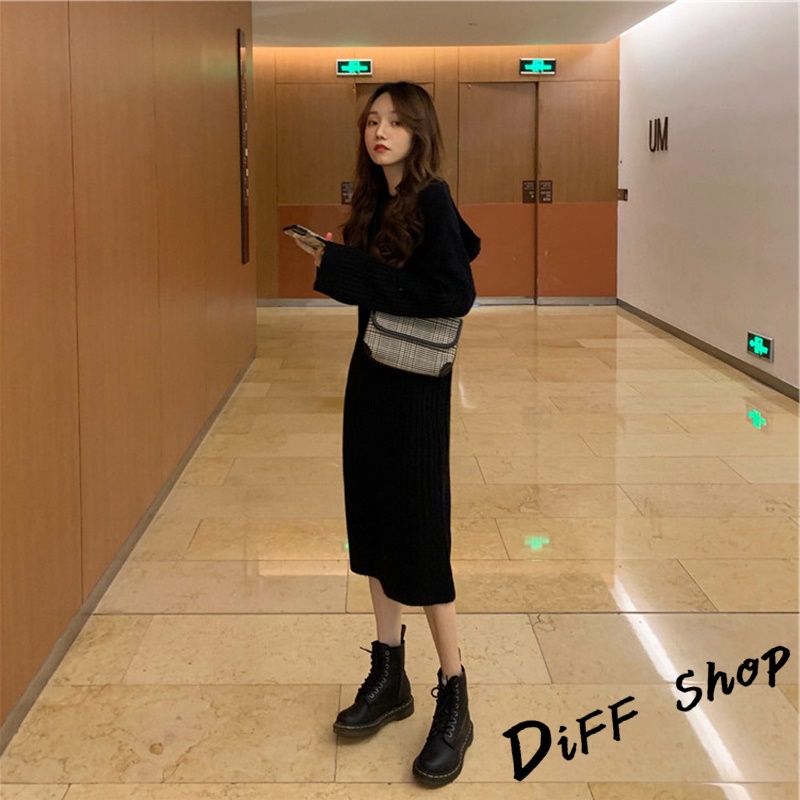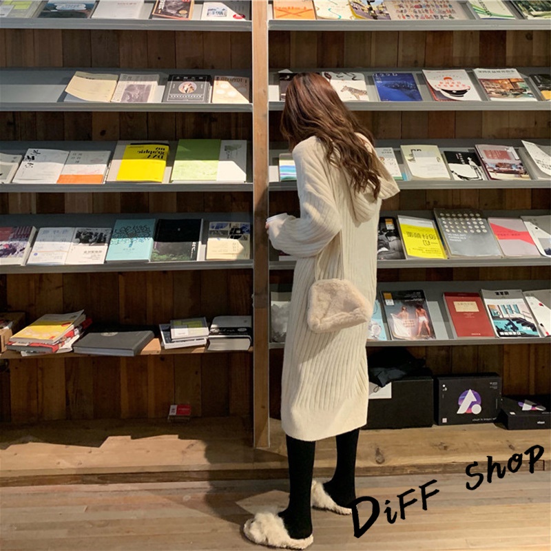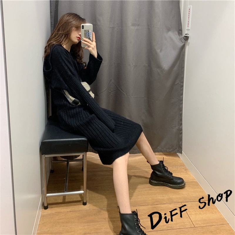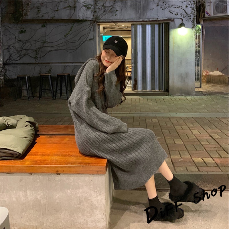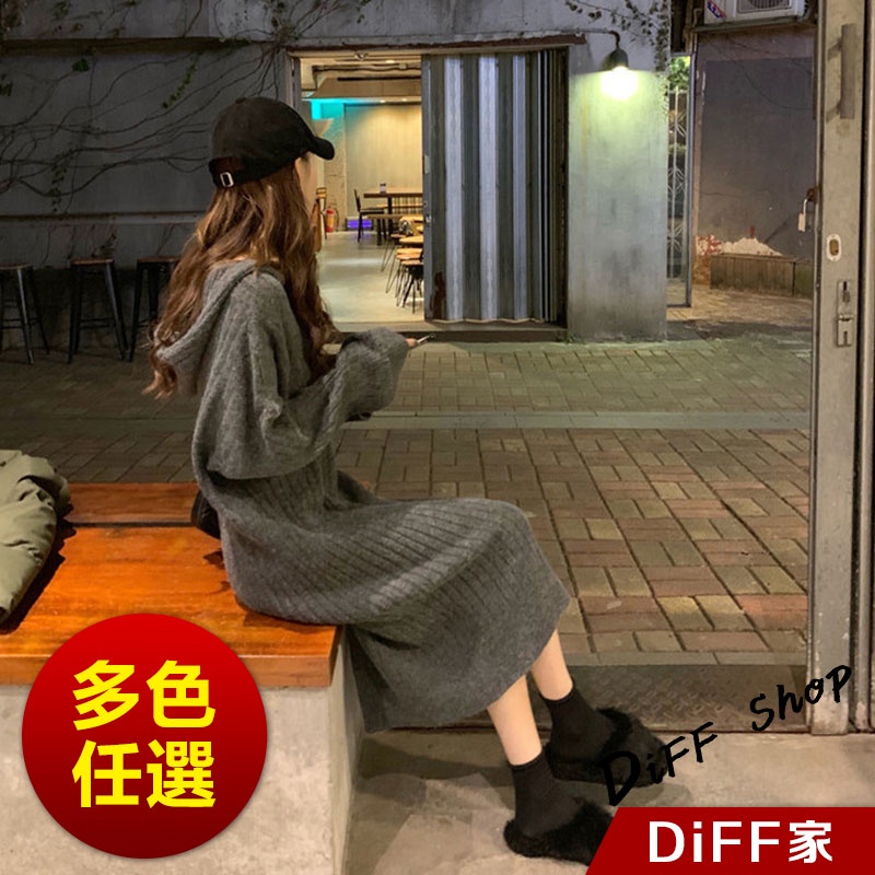 【DIFF】韓版寬鬆長版針織連帽針織上衣 毛衣 長袖上衣 女裝 衣服 寬鬆上衣 顯瘦上衣 冬裝 連衣裙【S162】【S162】黑色|【S162】灰色|【S162】卡其DiFF shop