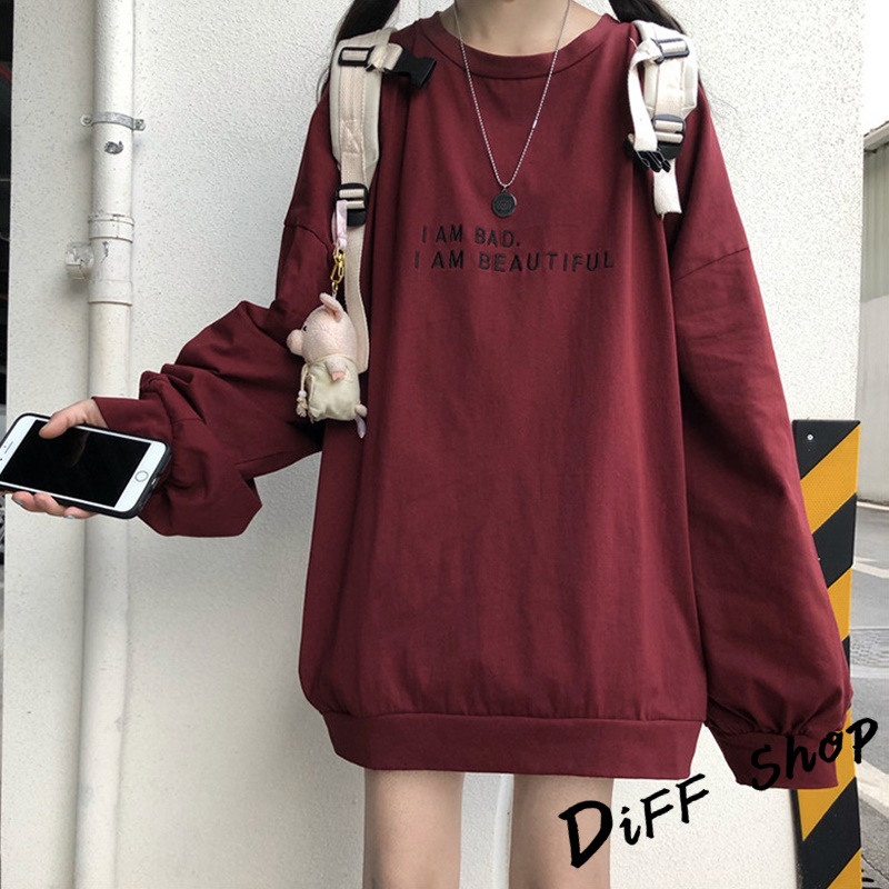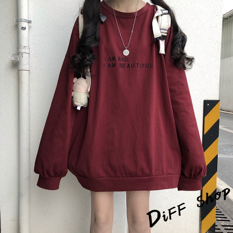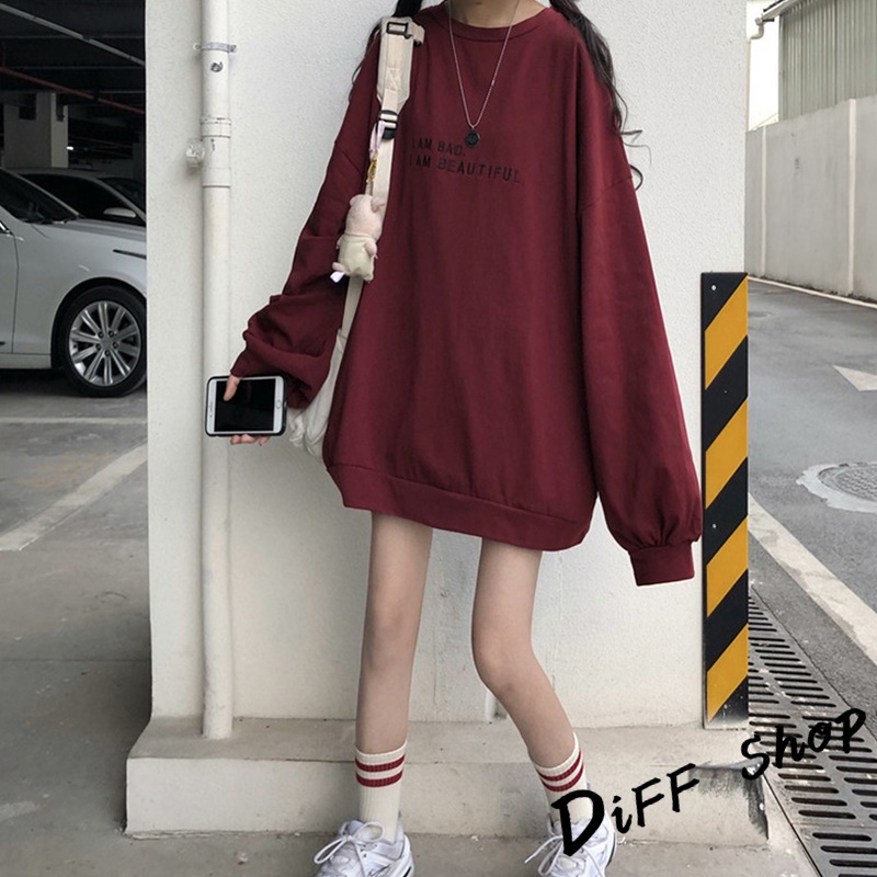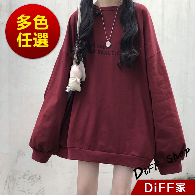 【DIFF】韓版薄款圓領寬鬆長袖上衣 女裝 衣服 寬鬆上衣 顯瘦上衣 長袖t恤 冬裝 素T【W311】【W311】黑色|【W311】酒紅T-shirtsDiFF shop