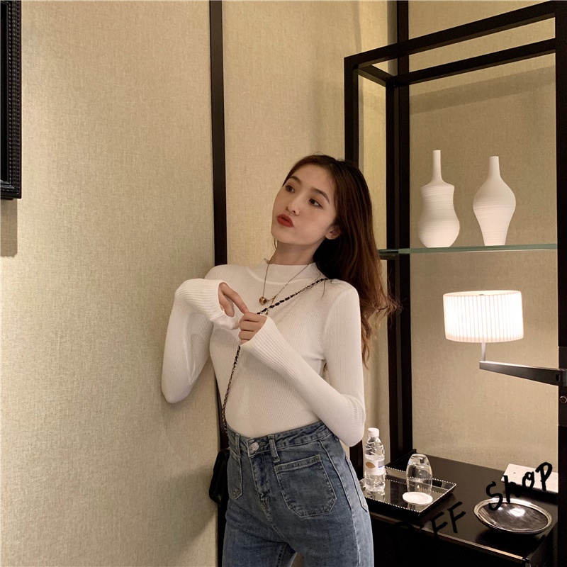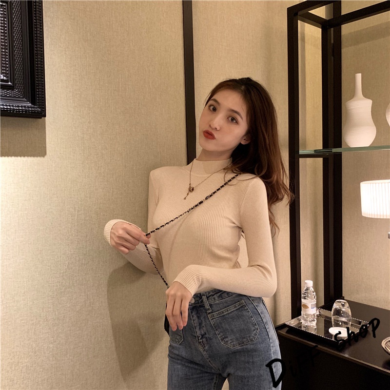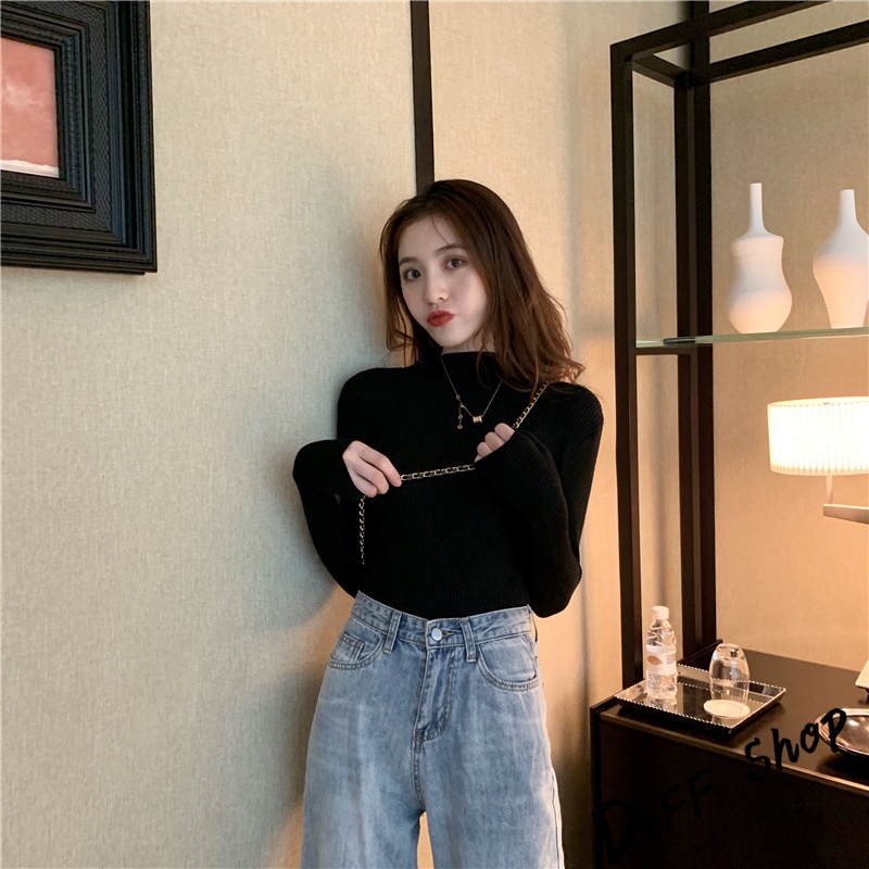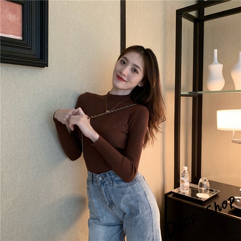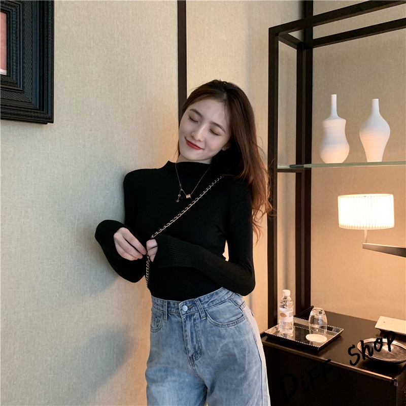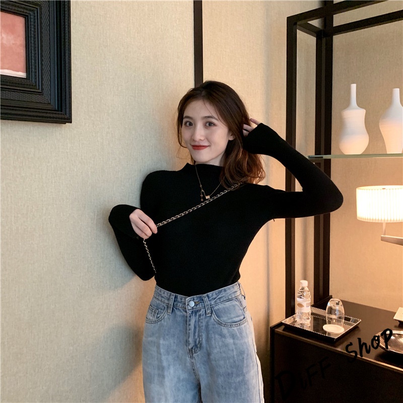 【DIFF】韓版半高領打底內搭顯瘦針織上衣毛衣 長袖上衣 女裝 衣服 顯瘦上衣 長袖t恤 冬裝 發熱衣 【W145】