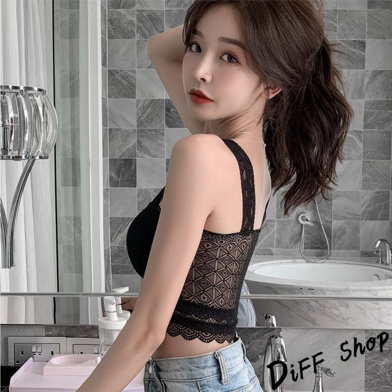 【DIFF】韓版小心機蕾絲菱形花邊內搭短版背心 帶胸墊免穿內衣 小可愛 女裝 衣服 短版上衣 運動背心【V365】【V365】黑色|【V365】白色|【V365】杏色OthersDiFF shop