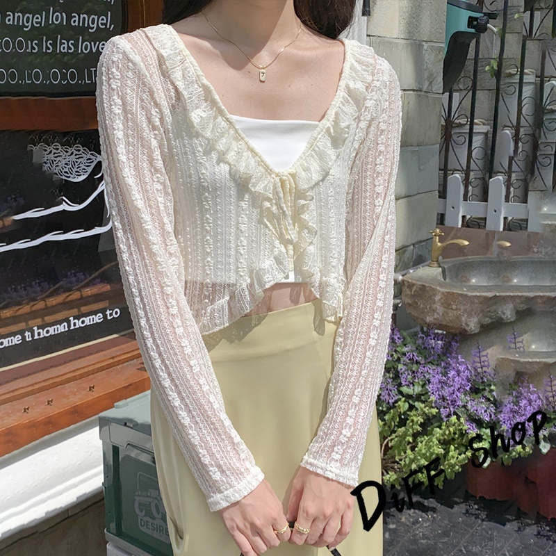 【DIFF】韓版氣質蕾絲防曬披肩外套 上衣 女裝 衣服 薄外套 防曬外套 小外套 短版外套 短版罩衫 透膚【J336】【J336】黑色|【J336】杏色|【J336】白色JacketsDiFF shop