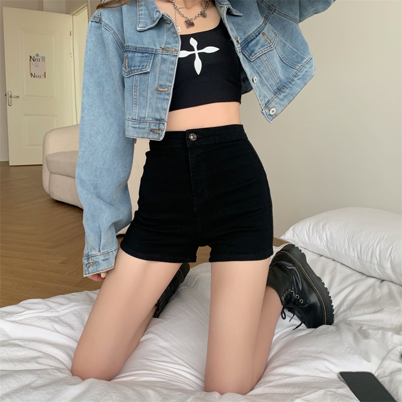 【CHAOO】短褲 牛仔褲 牛仔短褲 五分褲 熱褲 彈性短褲 五分褲女 牛仔短褲 慢跑短褲 a字短褲 顯瘦牛仔短褲黑色,S|黑色,M|黑色,L|黑色,XLShortsCHAOO 台北原創服飾品牌
