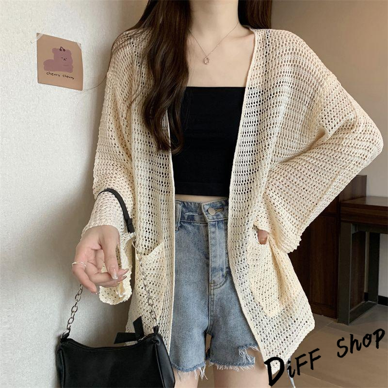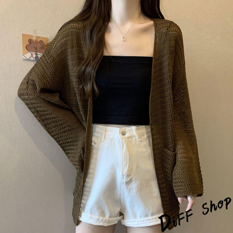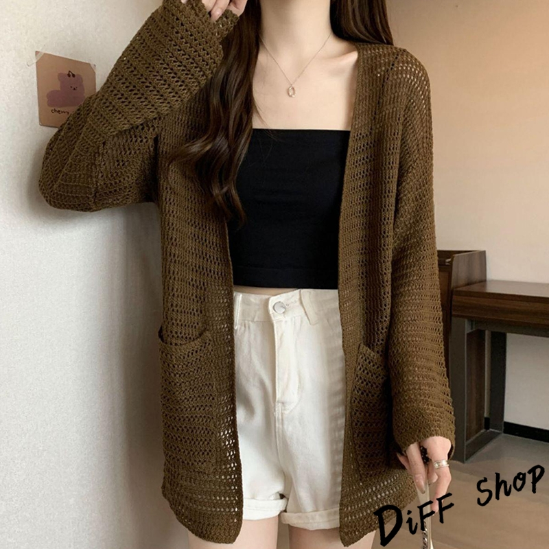 【DIFF】韓版薄款鏤空寬鬆防曬針織外套 上衣 女裝 衣服 外套 長袖上衣 長袖上衣【J331】【J331】卡其|【J331】咖啡DiFF shop