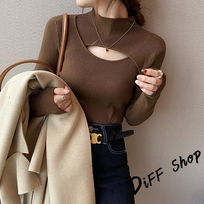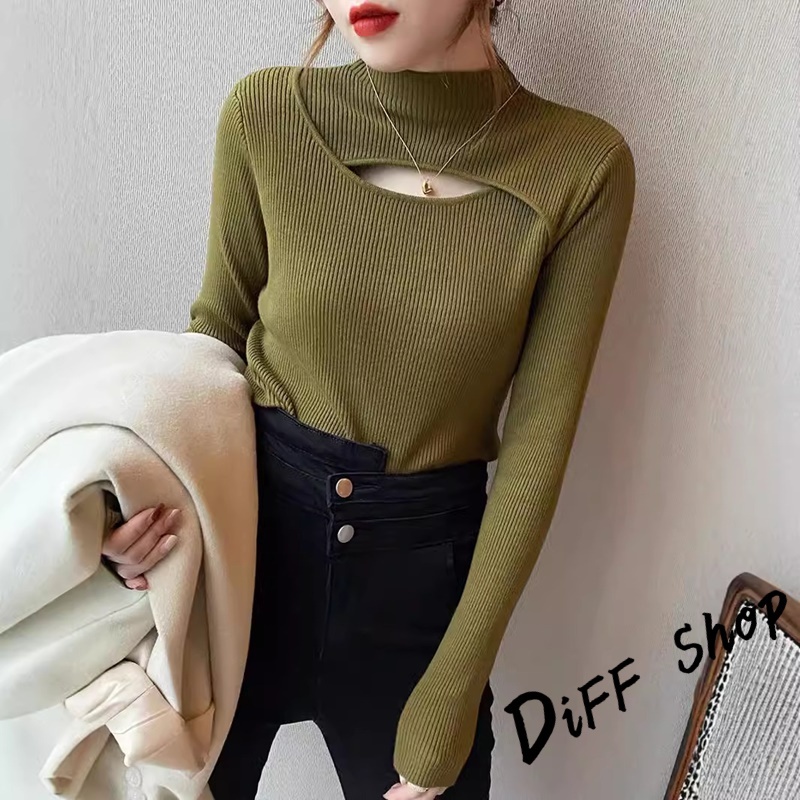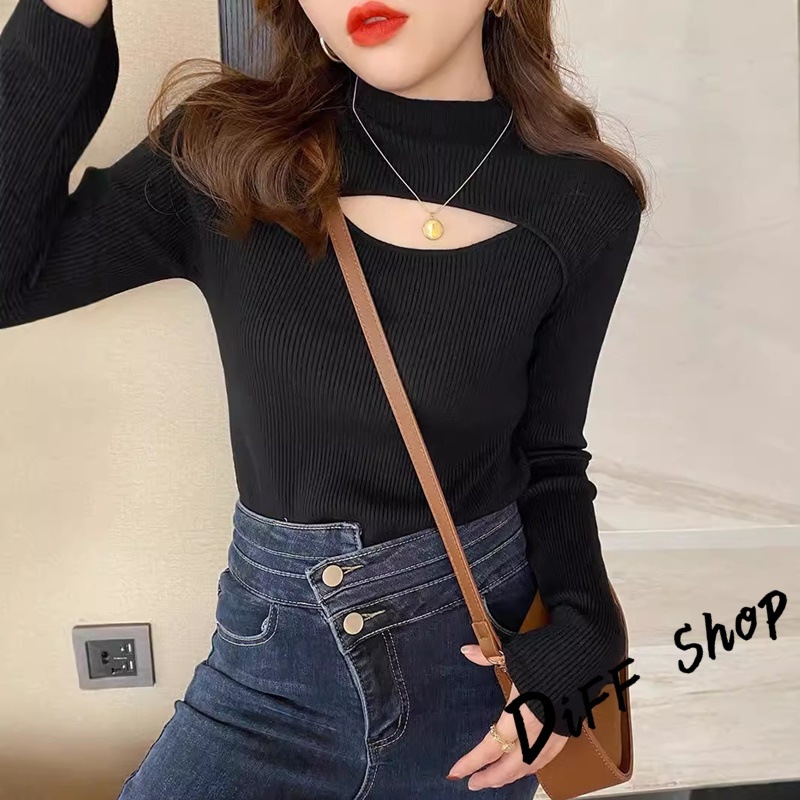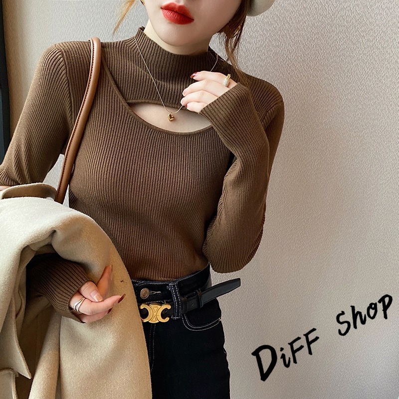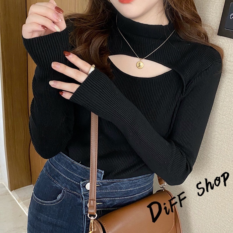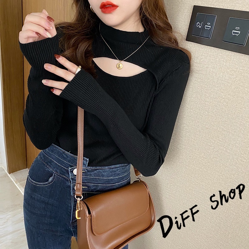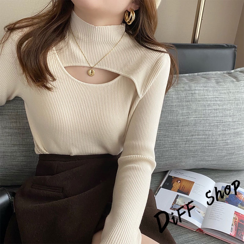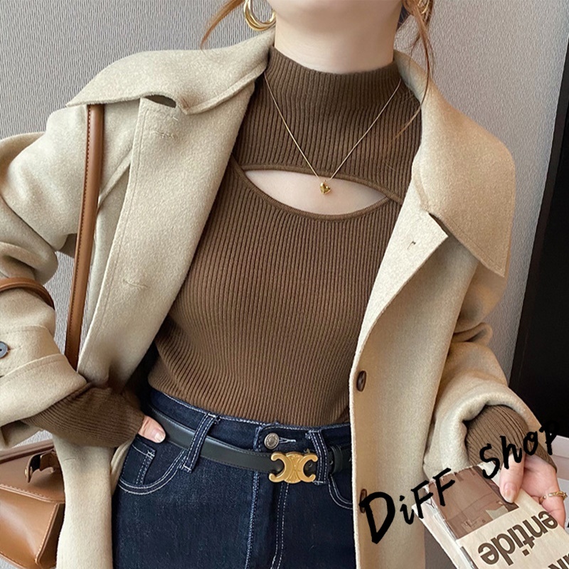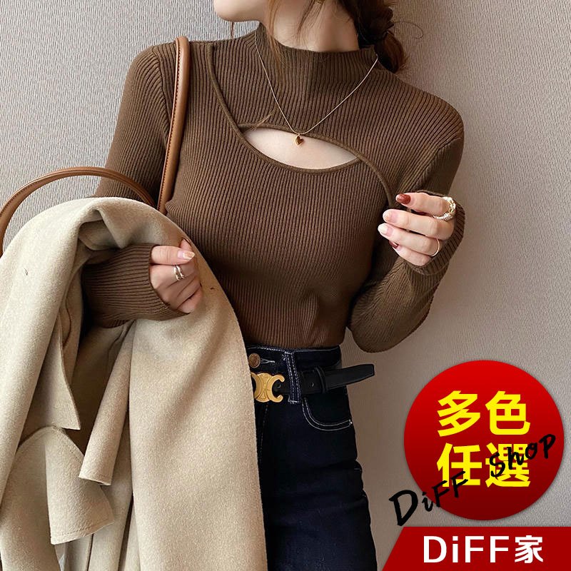 【DIFF】韓版小心機高級感半高領針織上衣 毛衣 長袖上衣 女裝 衣服 長袖t恤 保暖上衣 冬裝【W538】【W538】黑色|【W538】杏色|【W538】咖啡DiFF shop