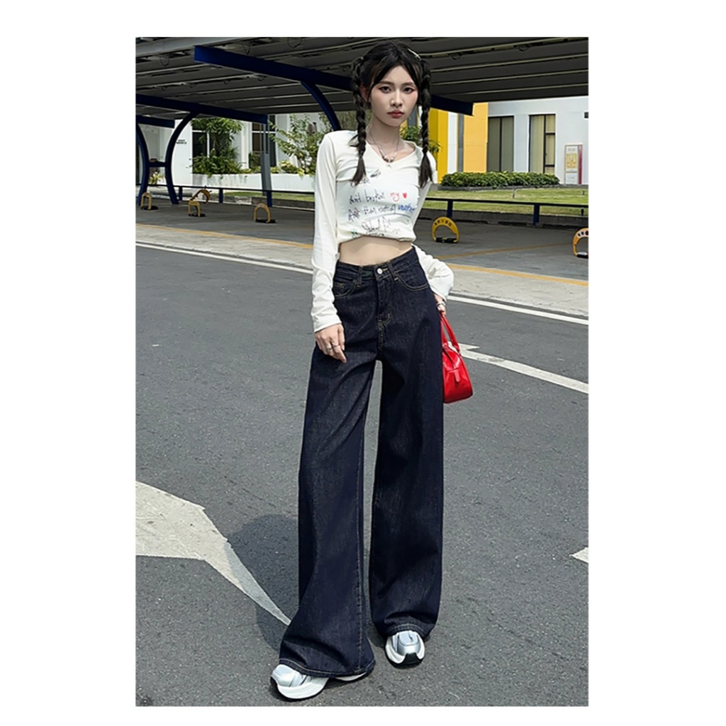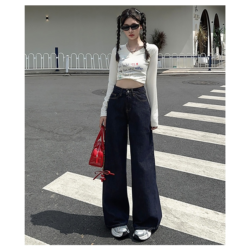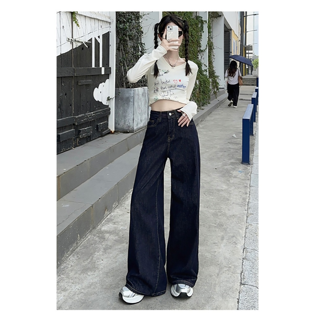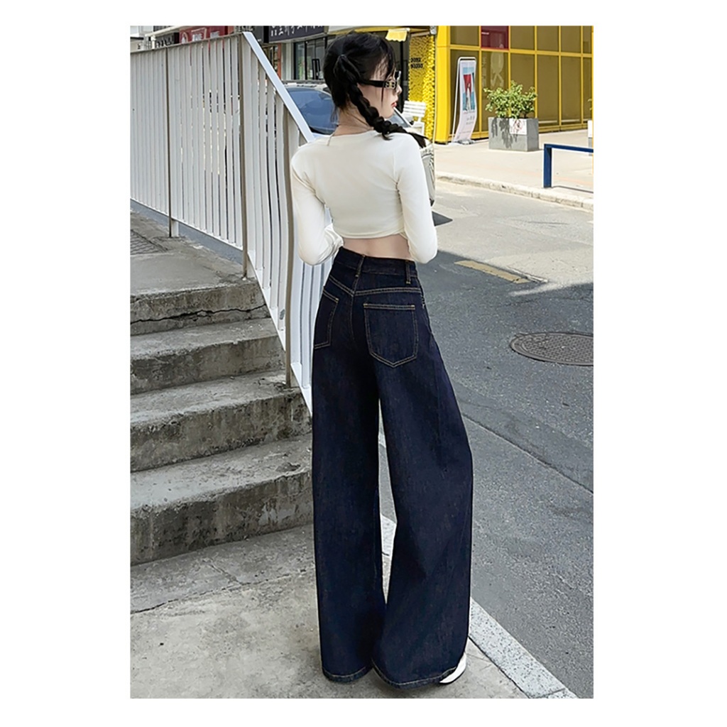 深藍復古闊腿牛仔褲!牛仔褲 牛仔寬褲 闊腿褲 高腰牛仔褲 正韓牛仔褲 韓國長褲 寬鬆牛仔褲 直筒牛仔褲 小隻女穿搭 長褲深藍色,S|深藍色,M|深藍色,L|深藍色【優質版】,S|深藍色【優質版】,M|深藍色【優質版】,LCHAOO 台北原創服飾品牌