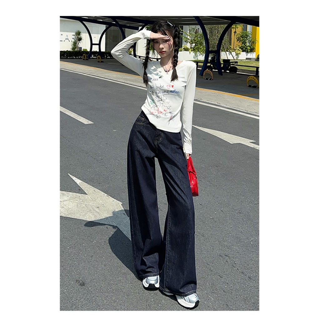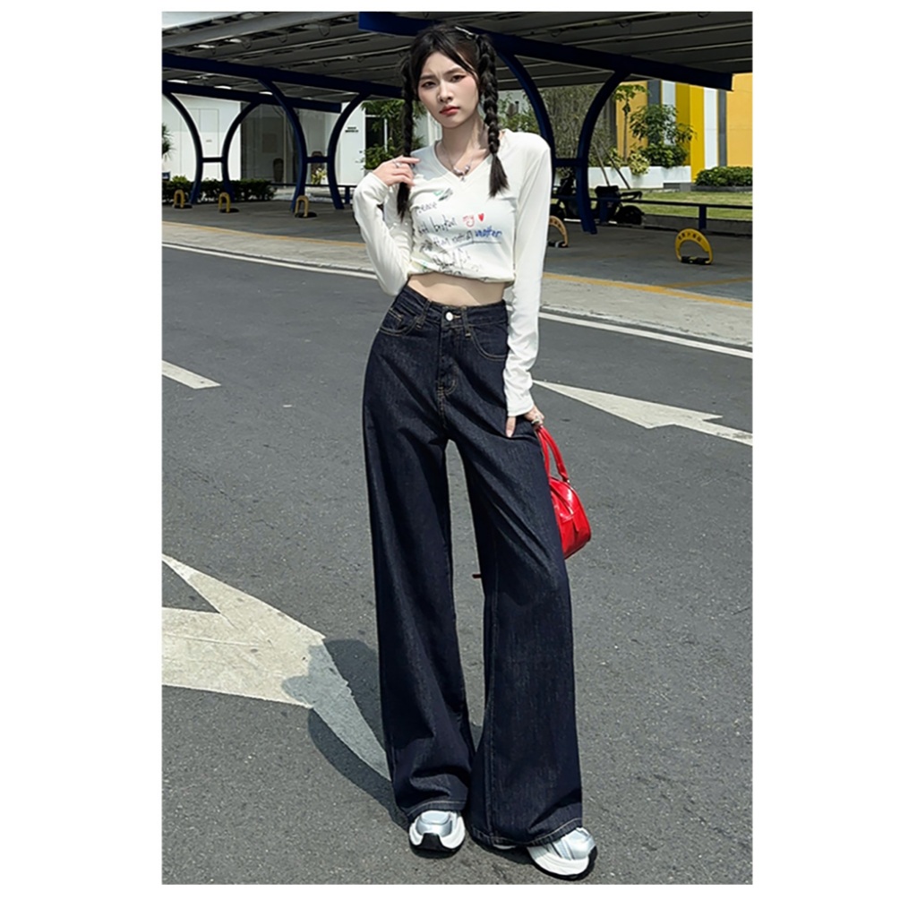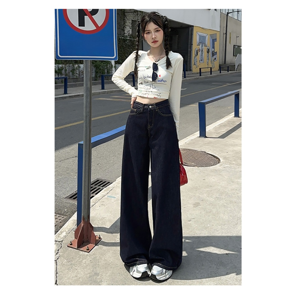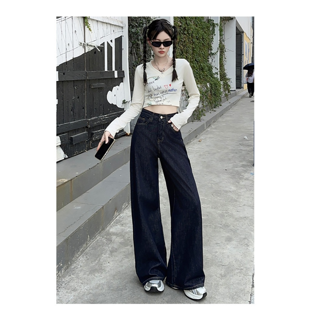 深藍復古闊腿牛仔褲!牛仔褲 牛仔寬褲 闊腿褲 高腰牛仔褲 正韓牛仔褲 韓國長褲 寬鬆牛仔褲 直筒牛仔褲 小隻女穿搭 長褲深藍色,S|深藍色,M|深藍色,L|深藍色【優質版】,S|深藍色【優質版】,M|深藍色【優質版】,LCHAOO 台北原創服飾品牌