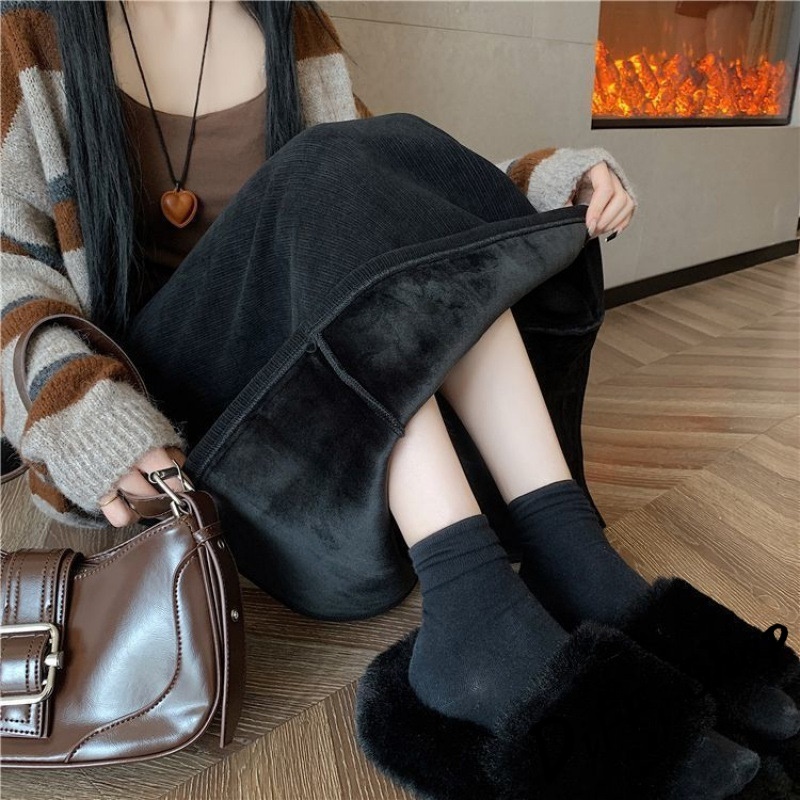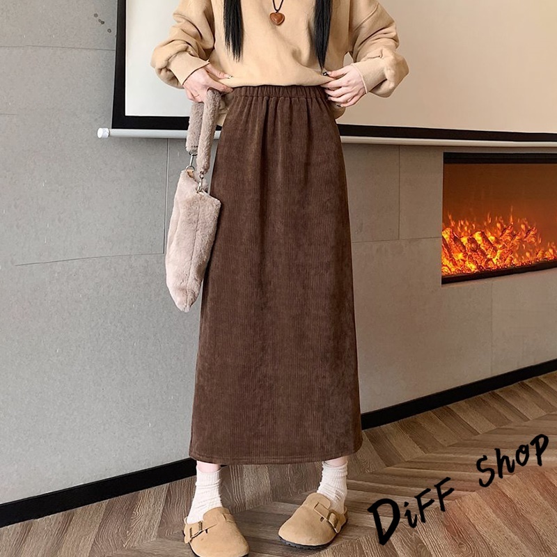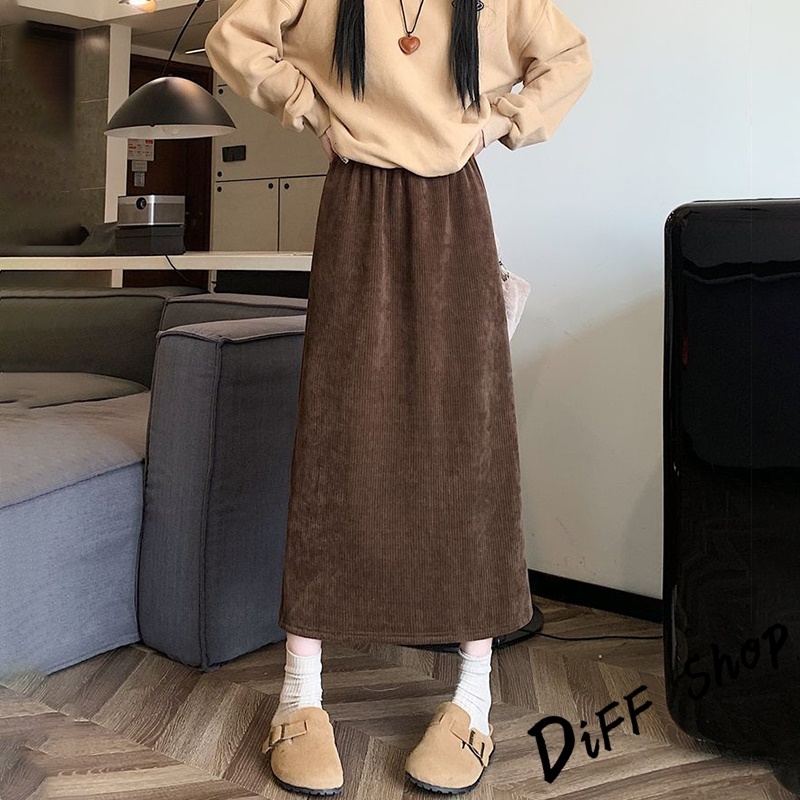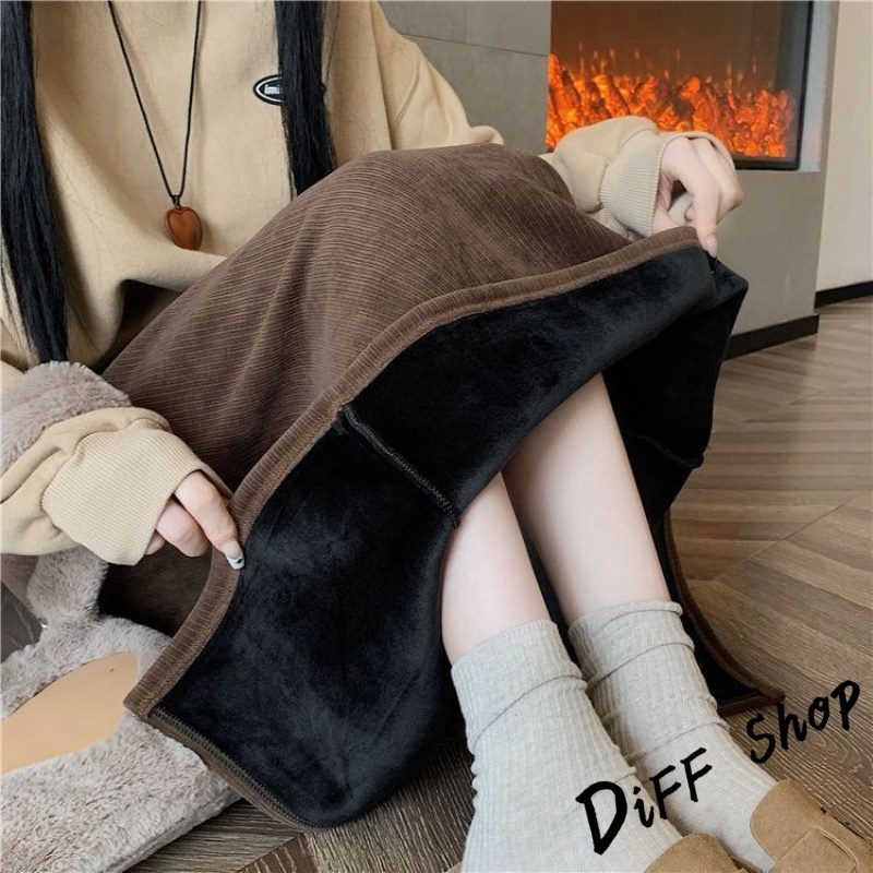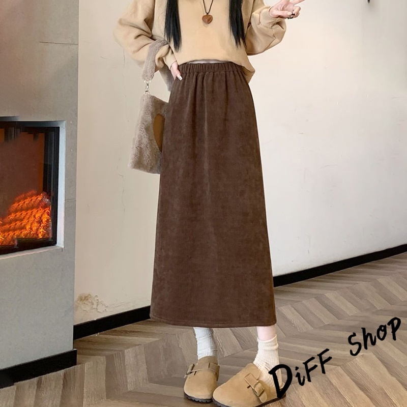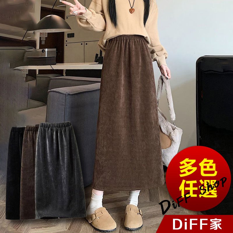 【DIFF】韓版內刷毛顯瘦後開叉高腰半身裙 長裙 裙子 褲子 長褲 休閒褲 女裝 高腰褲 冬天女裝 秋冬女裝【P308】【P308】黑色|【P308】奶白色|【P308】咖啡 DiFF shop