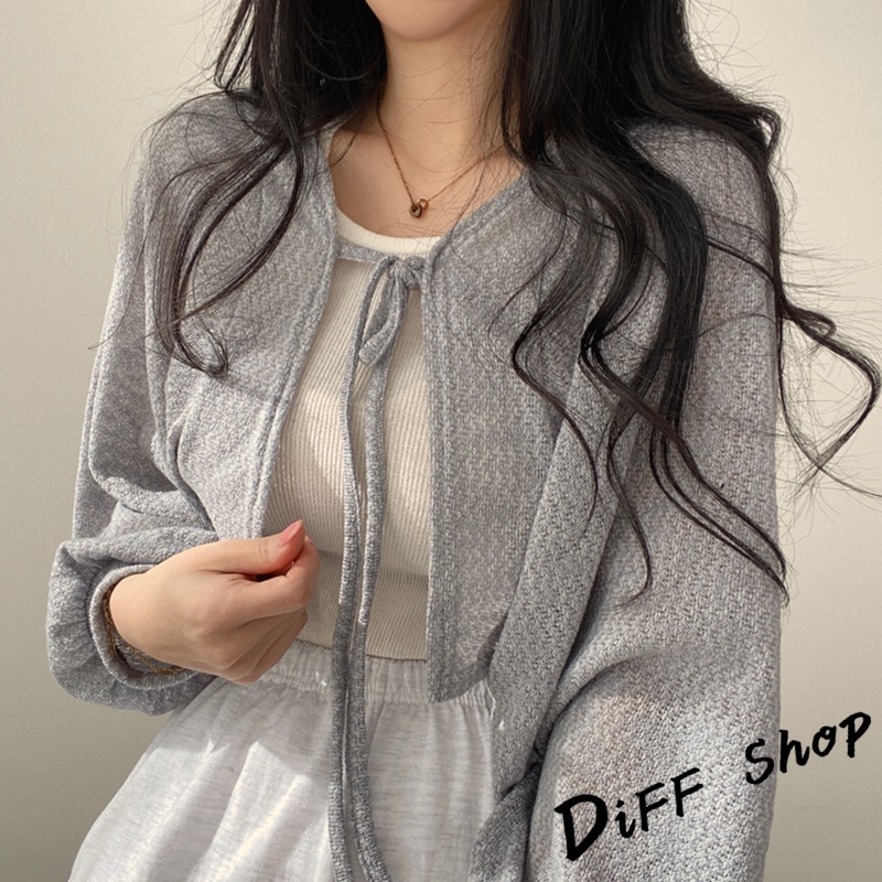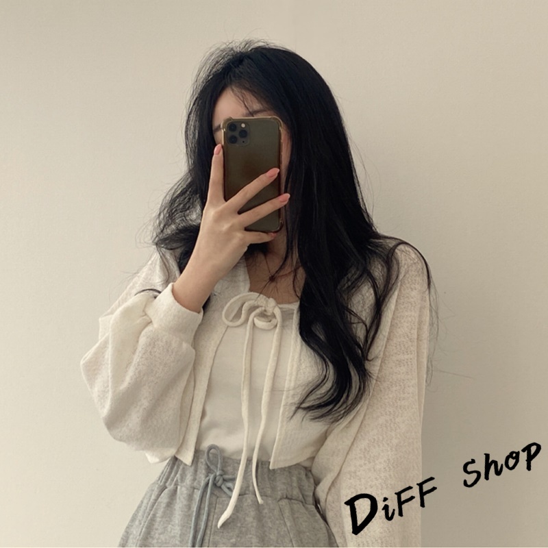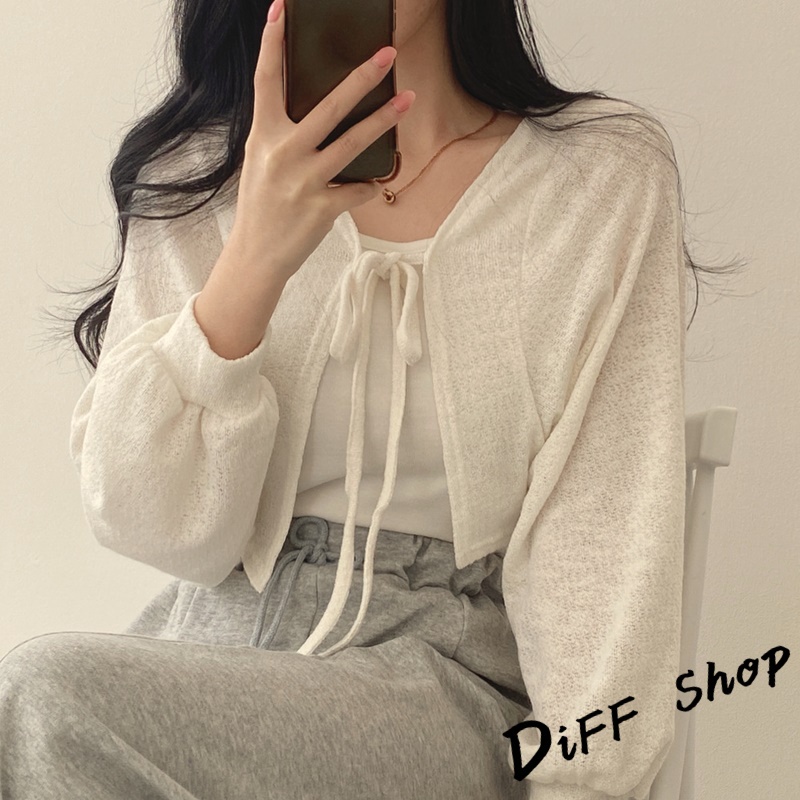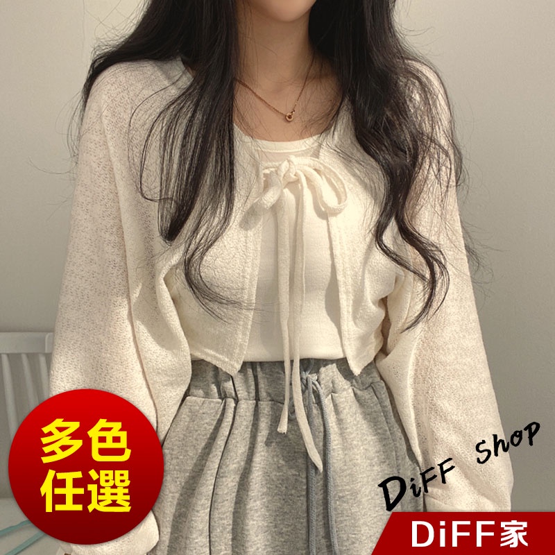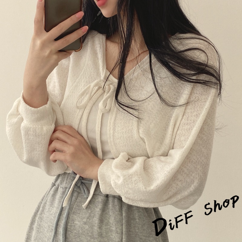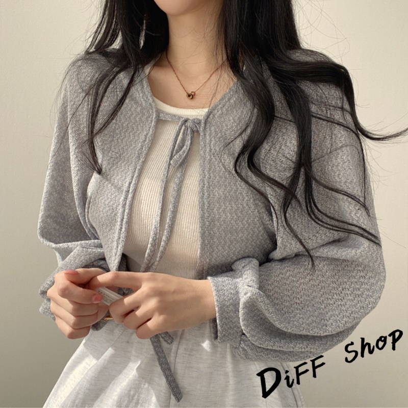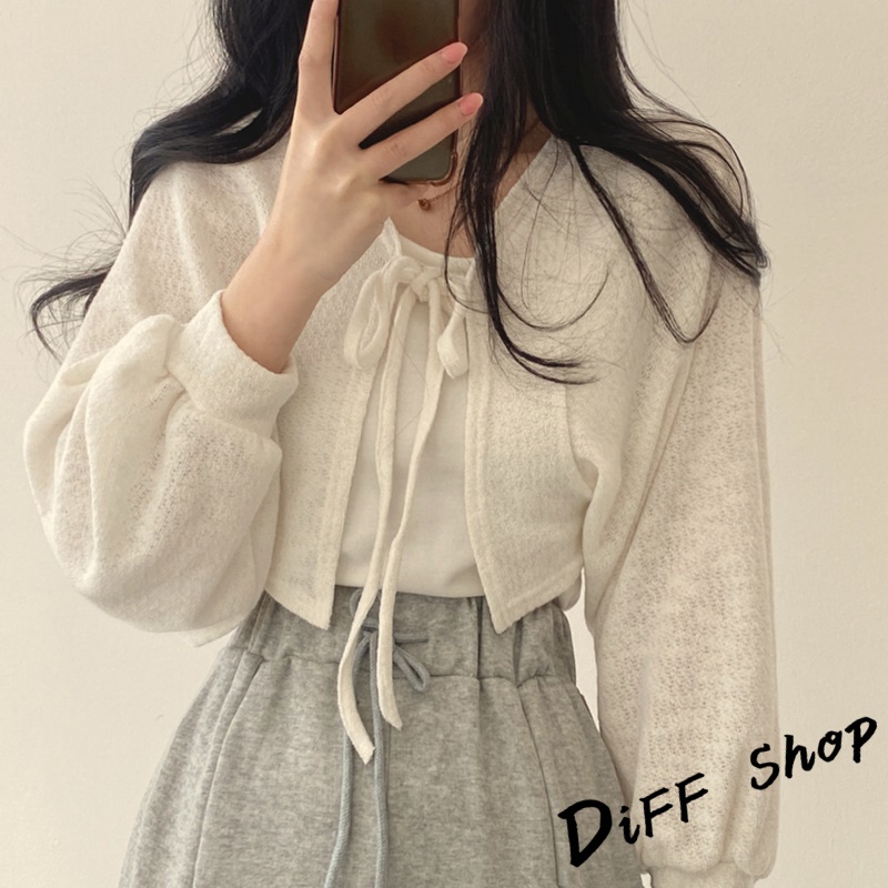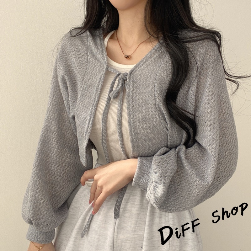 【DIFF】韓版復古綁帶薄款泡泡袖短版外套 上衣 女裝 衣服 外套 薄外套 罩衫 防曬外套 長袖上衣 針織 【J213】【J213】黑色|【J213】白色|【J213】灰色OthersDiFF shop