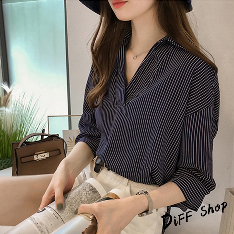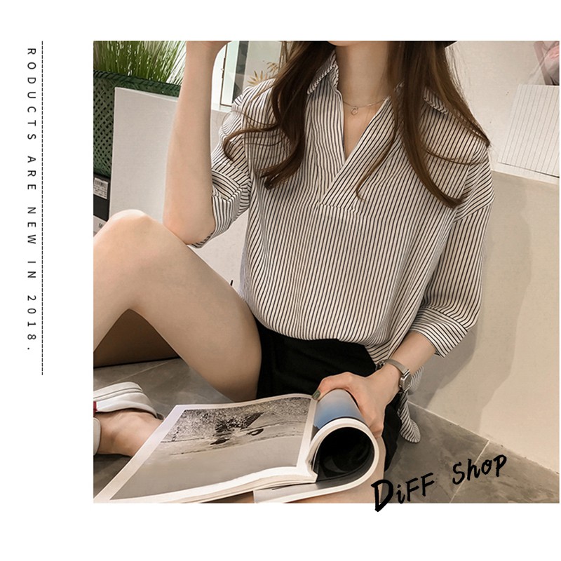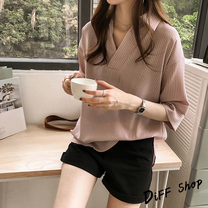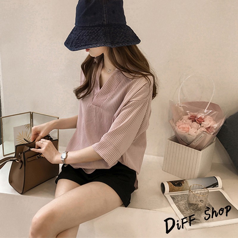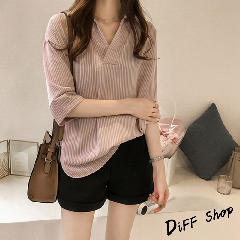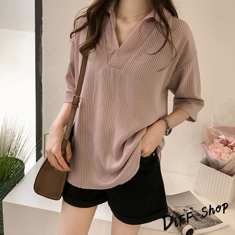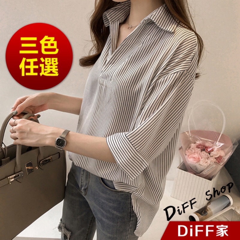 【DIFF】韓版BF風男友風寬鬆顯瘦條紋襯衫 短袖上衣 女裝 衣服 T桖【T199】【T199】白色|【T199】藏青|【T199】粉色|【T199】黑色Shirts & BlousesDiFF shop