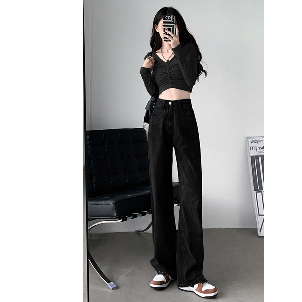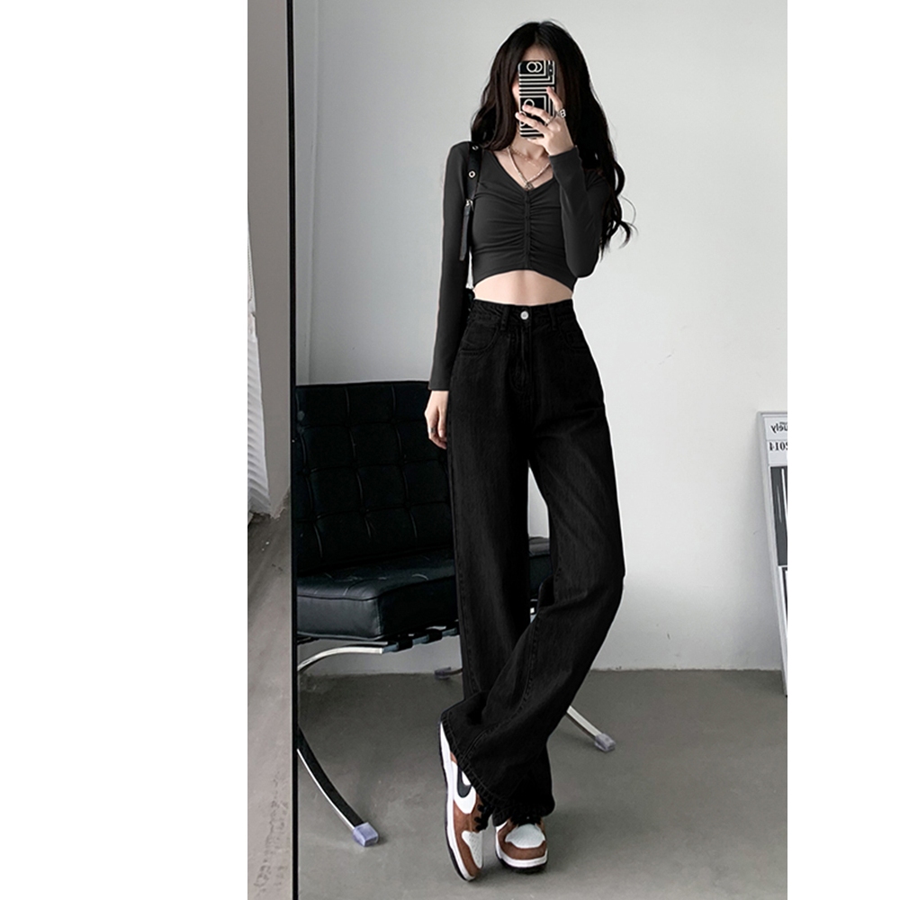 CHAOO 牛仔褲 高腰顯瘦牛仔褲 寬鬆牛仔褲 休閒長褲 韓版直筒褲 寬鬆直筒褲 直筒闊腿褲 高腰休閒褲 闊腿褲黑色長褲【高質量版】,M|黑色長褲【高質量版】,L|黑色長褲,S|黑色長褲,M|黑色長褲,L|黑色長褲【高質量版】,SCHAOO 台北原創服飾品牌