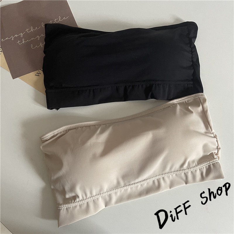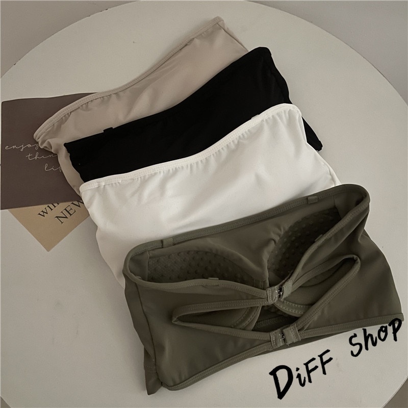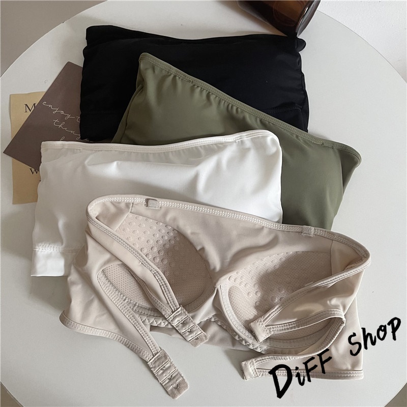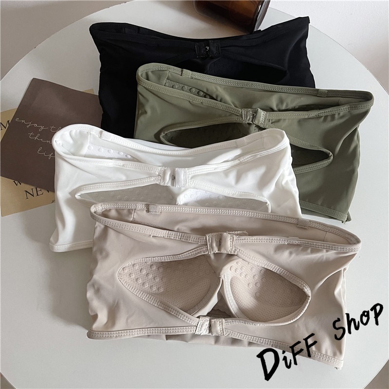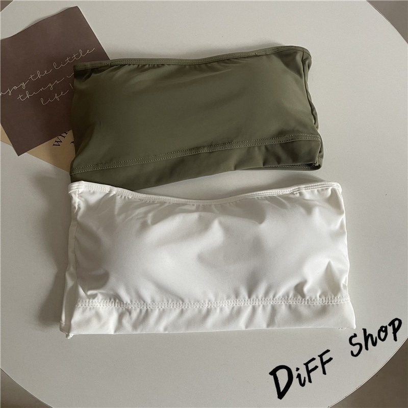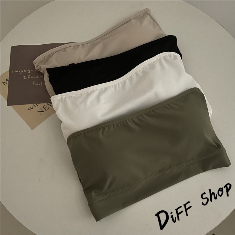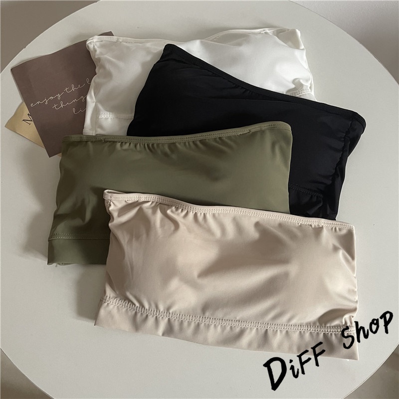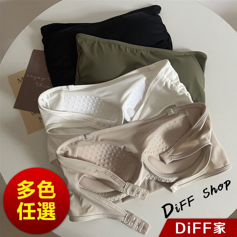 【DIFF】韓版冰絲一字美背無痕背心 帶胸墊免穿內衣 小可愛 女裝 衣服 短版上衣 夏天女裝 運動背心【V407】【V407】軍綠|【V407】黑色|【V407】膚色|【V407】白色Tube TopsDiFF shop