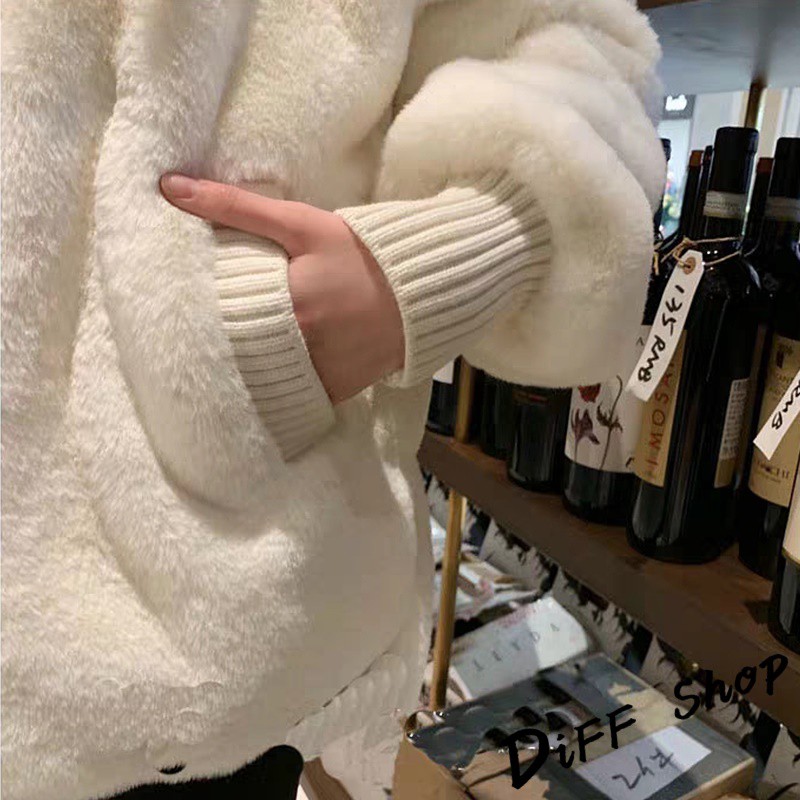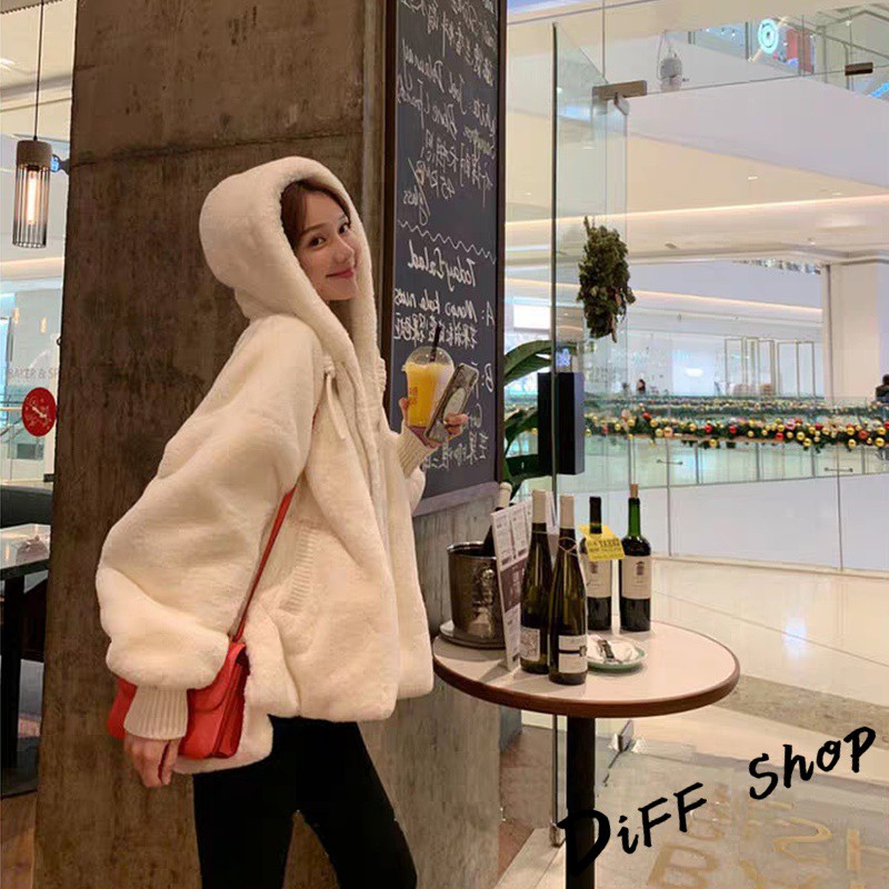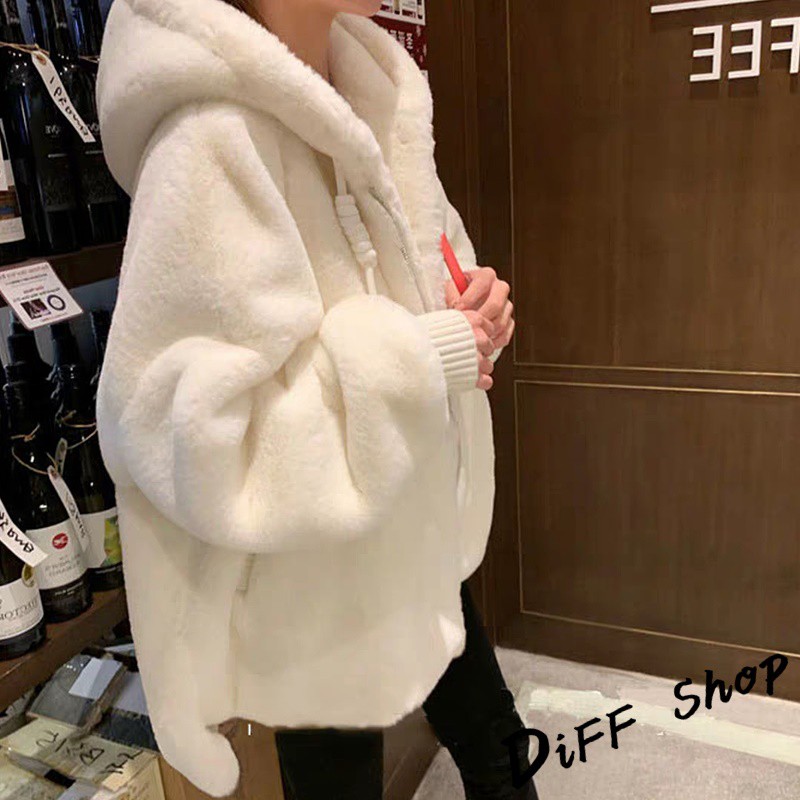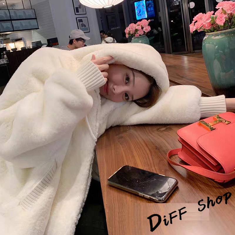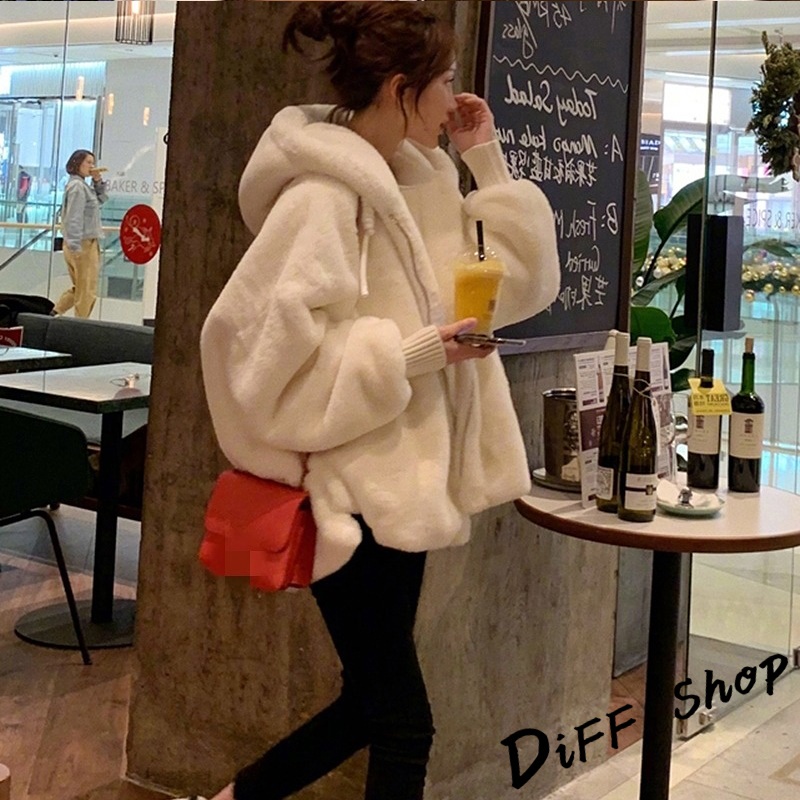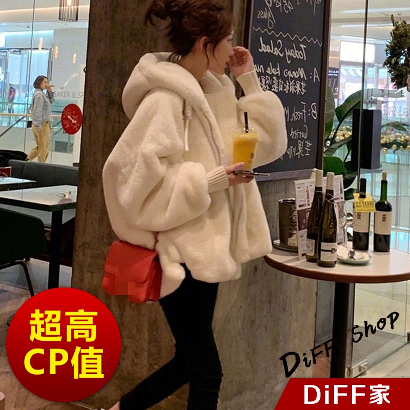 【DIFF】韓版毛絨保暖寬鬆連帽外套 毛毛外套 搭外套 上衣 女裝 衣服 外套 厚外套【J156】【J156】白色Winter Jackets & CoatsDiFF shop