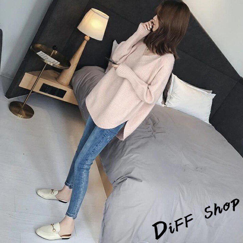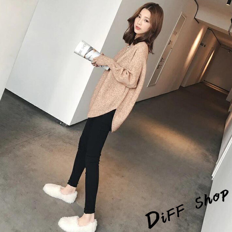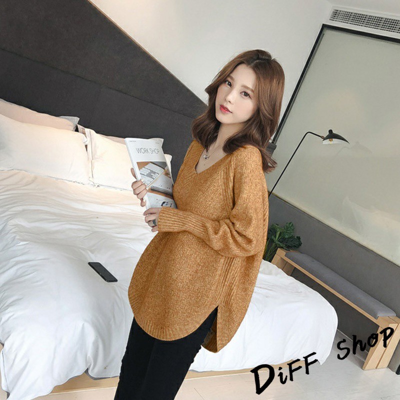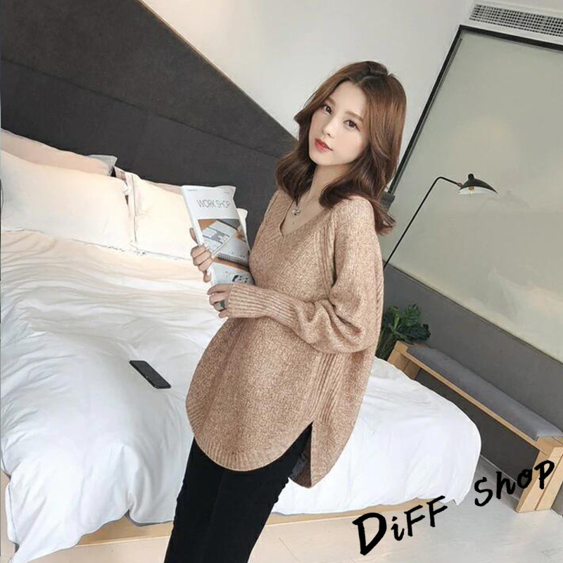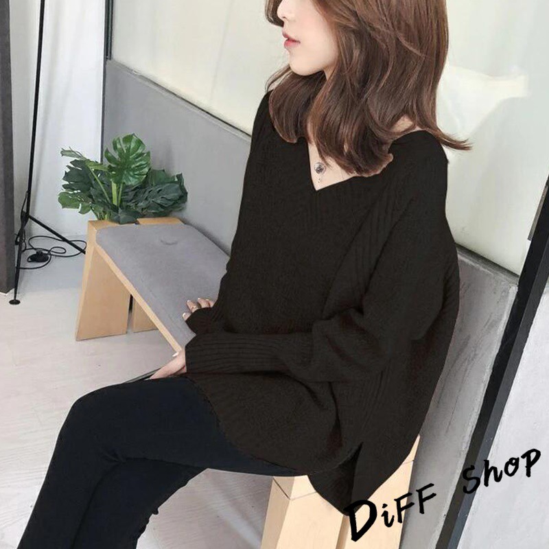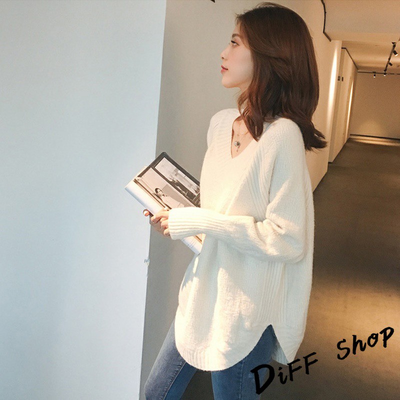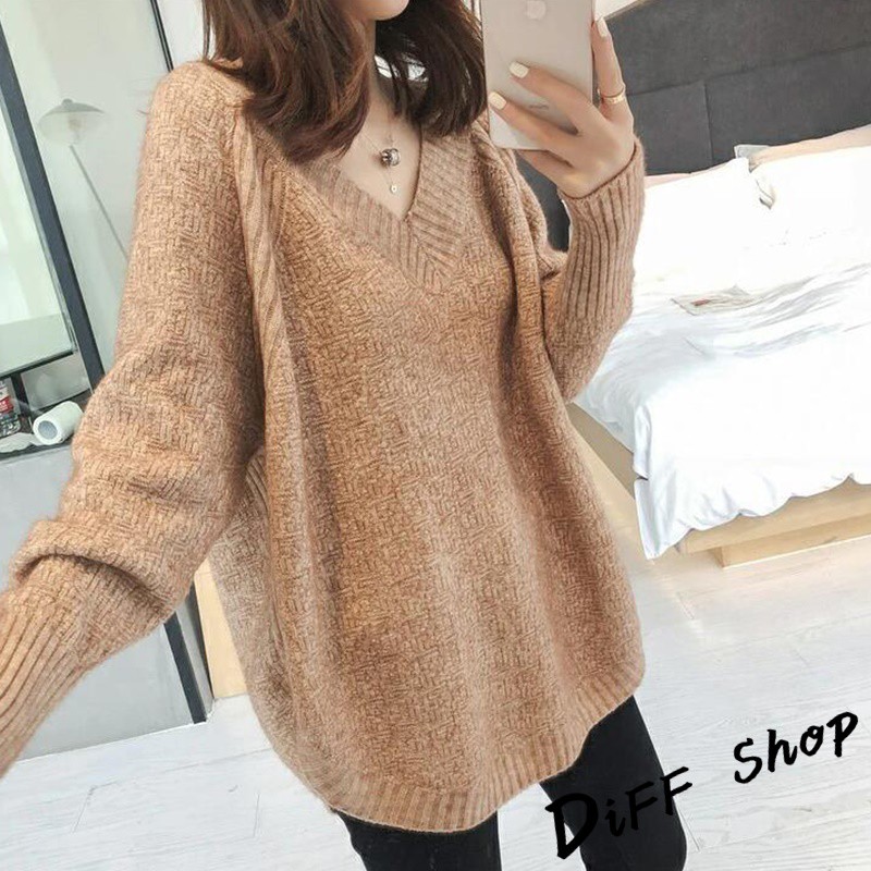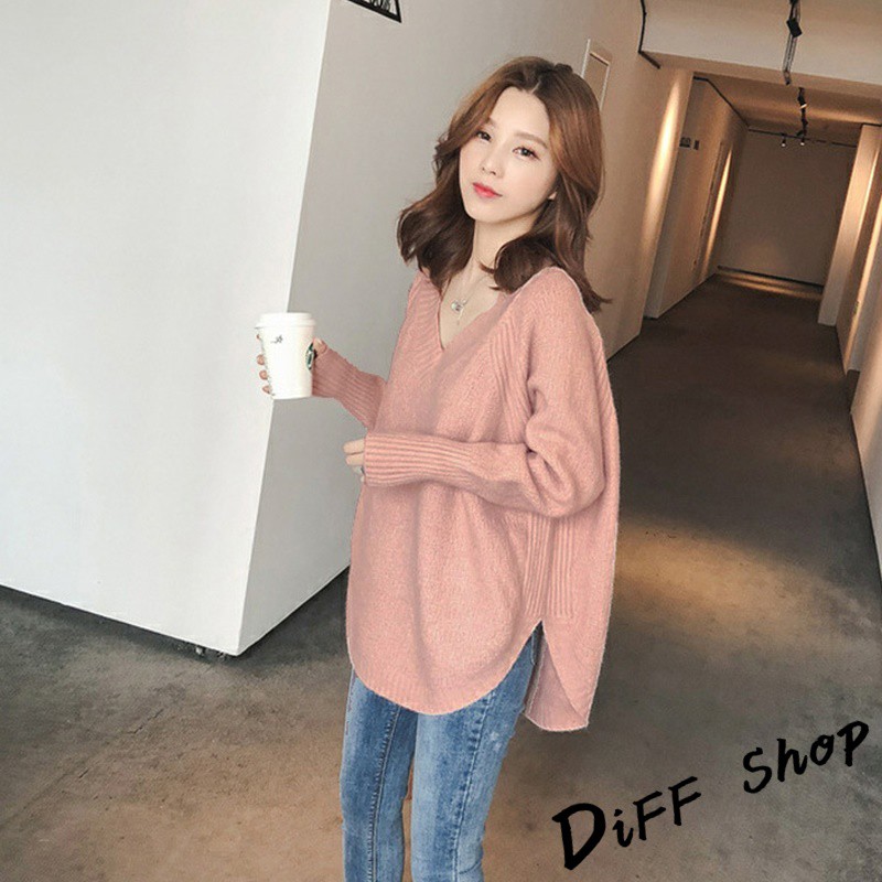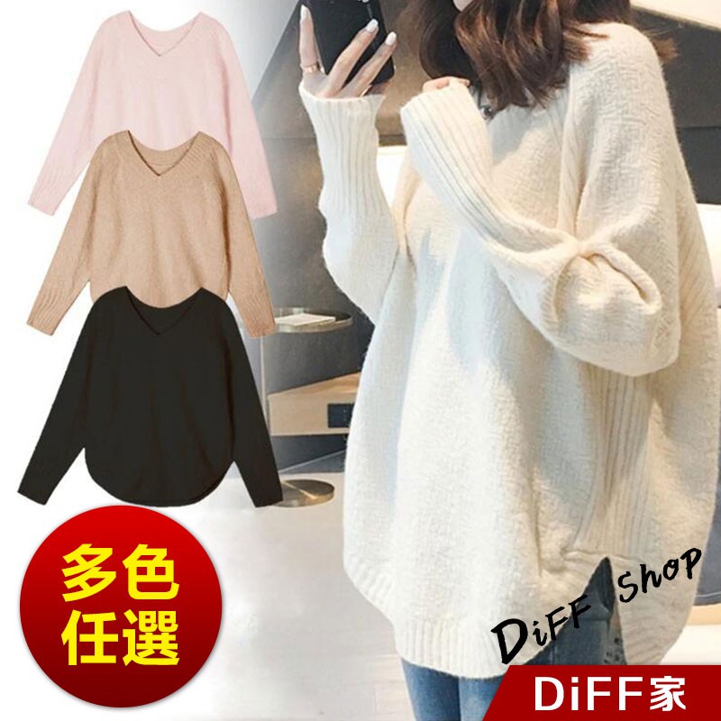 【DIFF】韓版慵懶風寬鬆百搭V領針織上衣 毛衣 長袖上衣 女裝 衣服 寬鬆上衣 顯瘦上衣 素色 冬裝【S113】【S113】卡其|【S113】黑色|【S113】白色|【S113】粉色|【S113】灰色DiFF shop