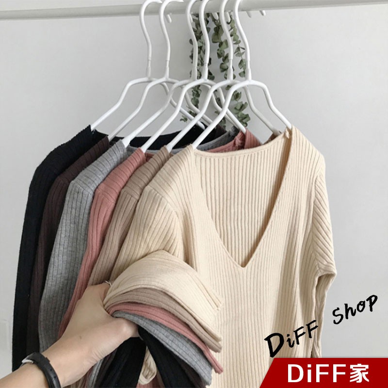 【DIFF】韓版秋冬v領彈性顯瘦針織上衣 長袖上衣 長袖t恤 女裝 衣服 寬鬆上衣 素T【W92】【W92】V領-白米色|【W92】V領-奶茶色|【W92】V領-咖啡色|【W92】V領-黑色|【W92】V領-淺粉|【W92】V領-灰色|【W92】圓領-黑色|【W92】圓領-米白|【W92】圓領-淺粉|【W92】圓領-灰色|【W92】圓領-奶綠色|【W92】圓領-咖啡|【W92】圓領-卡其DiFF shop