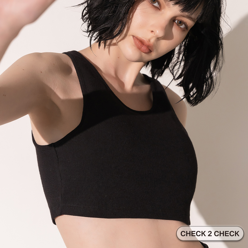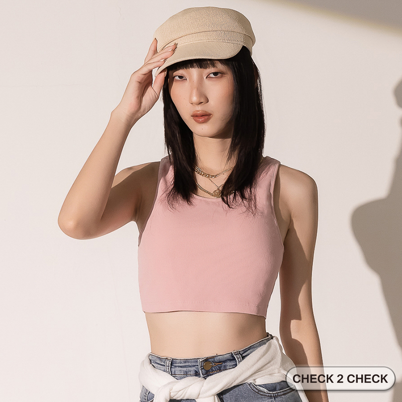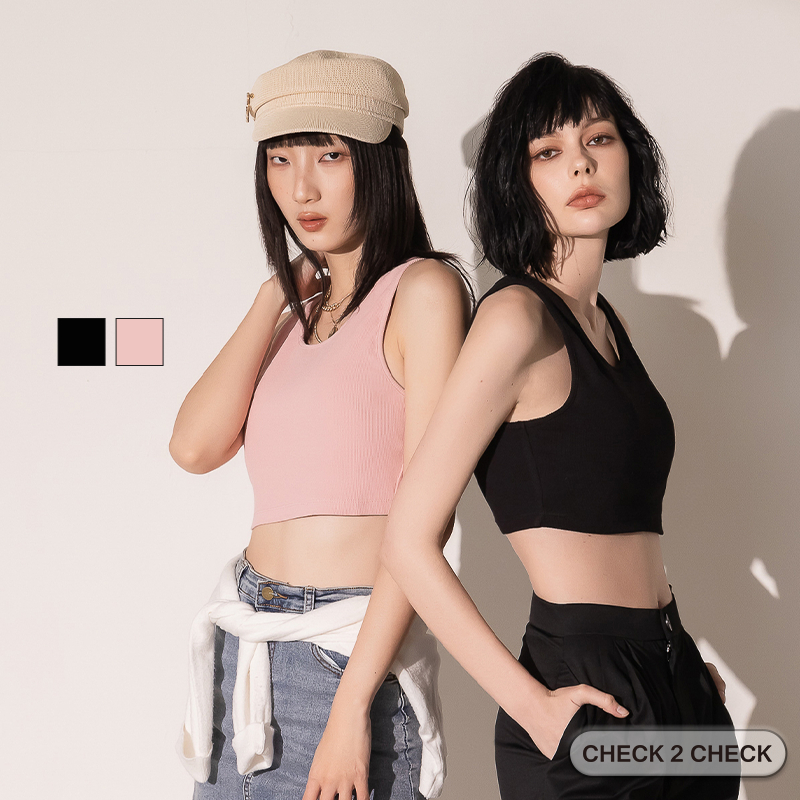 HUE-夏季舒棉針織BRA TOP(附墊) 短版上衣 短版背心 完美胸型 美胸背心【CB00-050002】[現貨]黑,S|黑,M|粉,S|粉,MTanks & CamisolesCHECK 2 CHECK官方旗艦店