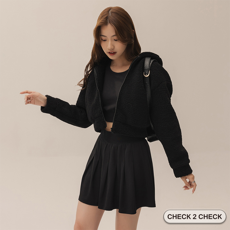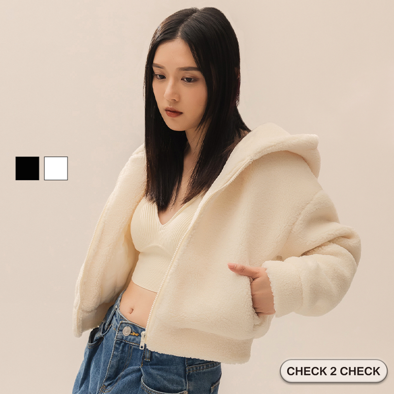 Check2Check-泰迪熊毛毛外套 毛絨外套 羊羔毛連帽外套 短版外套 保暖外套【CB00-100025】[現貨]白,S|白,M|白,L|黑,S|黑,M|黑,LWinter Jackets & CoatsCHECK 2 CHECK官方旗艦店