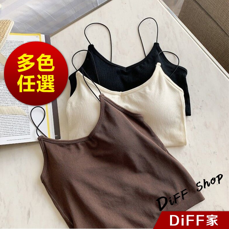 【DIFF】免穿內衣 韓版簡約彈性背心 女裝 衣服 上衣 小可愛 細肩帶背心 無鋼圈內衣 運動內衣【V117】【V117】黑色|【V117】咖啡色|【V117】白色Tanks & CamisolesDiFF shop