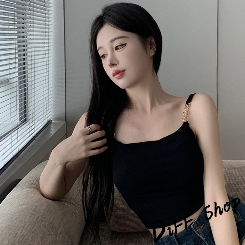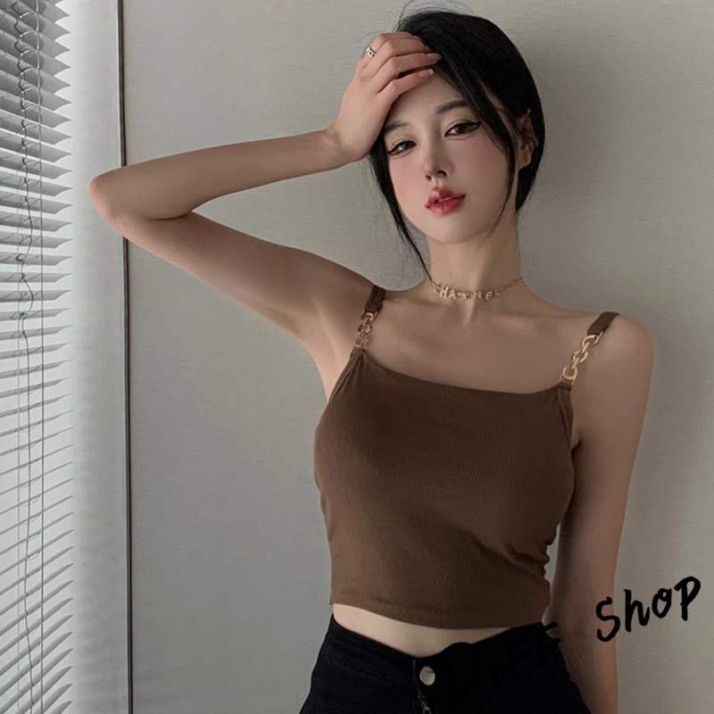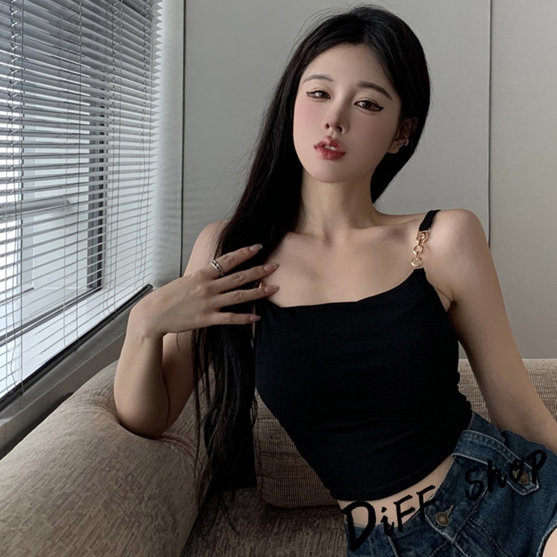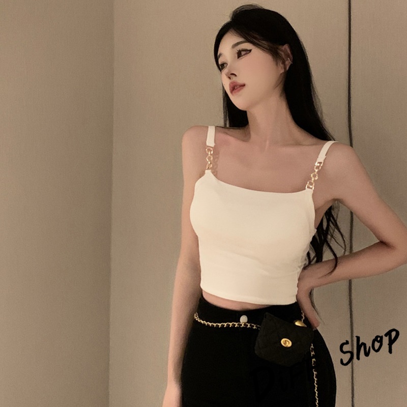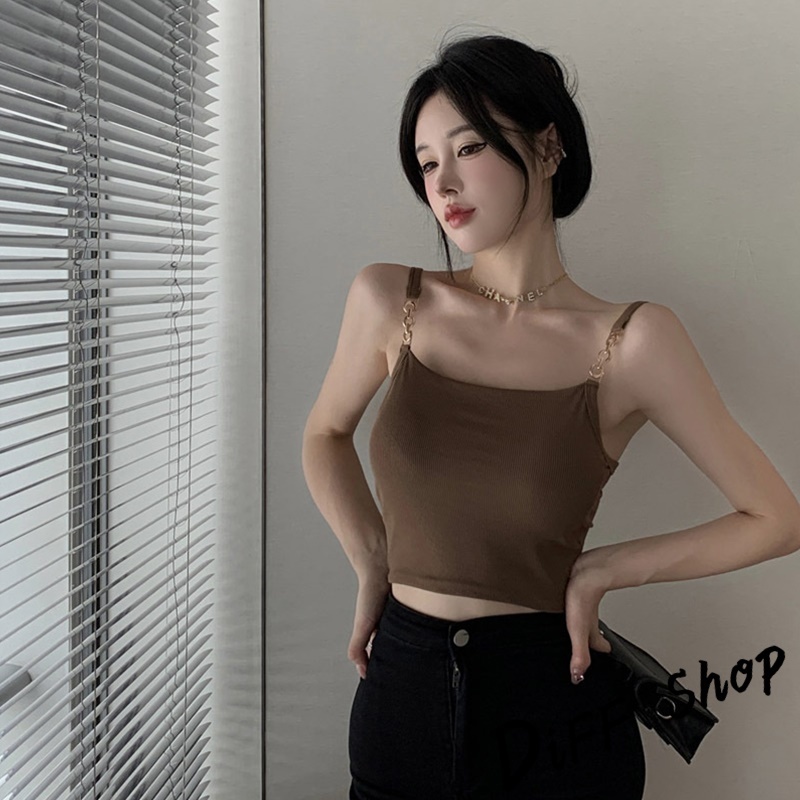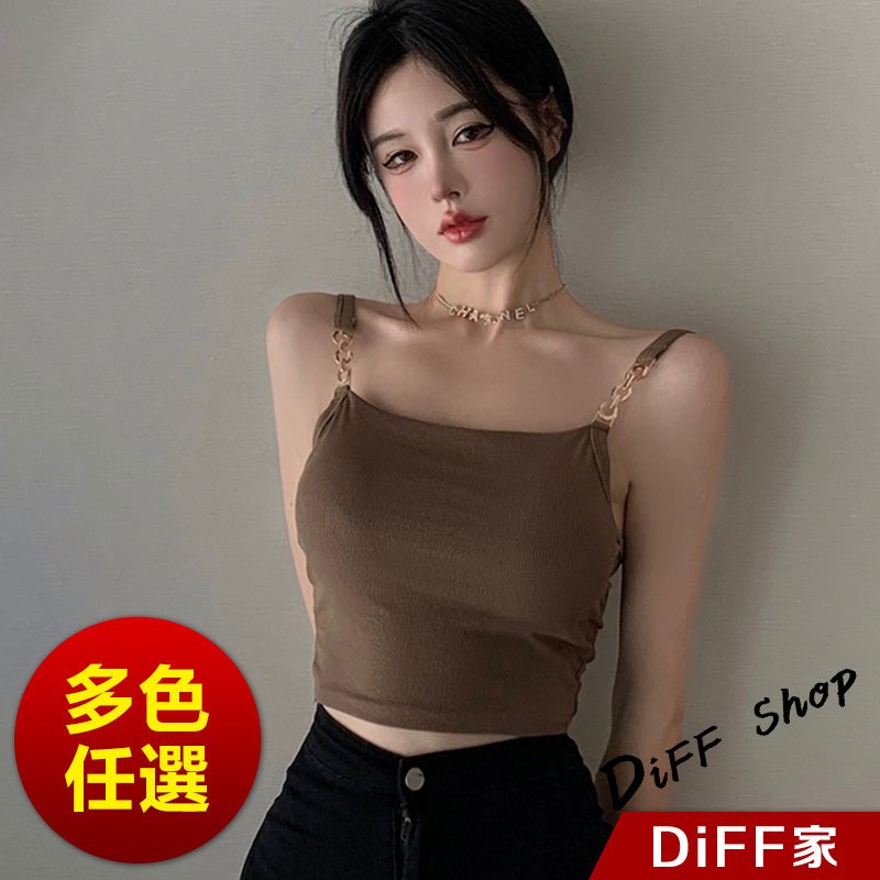 【DIFF】韓版法式鏈條吊帶背心 帶胸墊免穿內衣 小可愛 女裝 衣服 短版上衣 短板 夏天女裝 運動背心【V381】【V381】黑色|【V381】白色|【V381】卡其Tanks & CamisolesDiFF shop