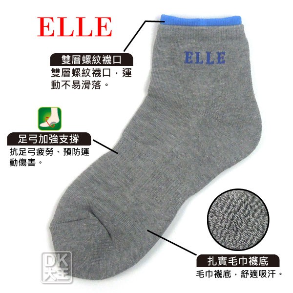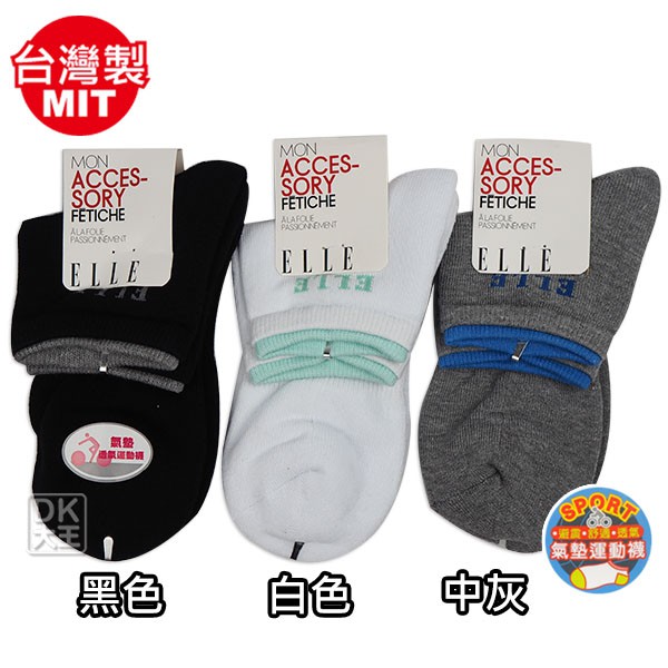 ELLE 運動短襪 運動襪 厚實毛巾襪底 足弓加強支撐 正版授權 台灣製【DK大王】黑色/1雙|白色/1雙|中灰/1雙|莓粉/1雙SocksDK大王旗艦店